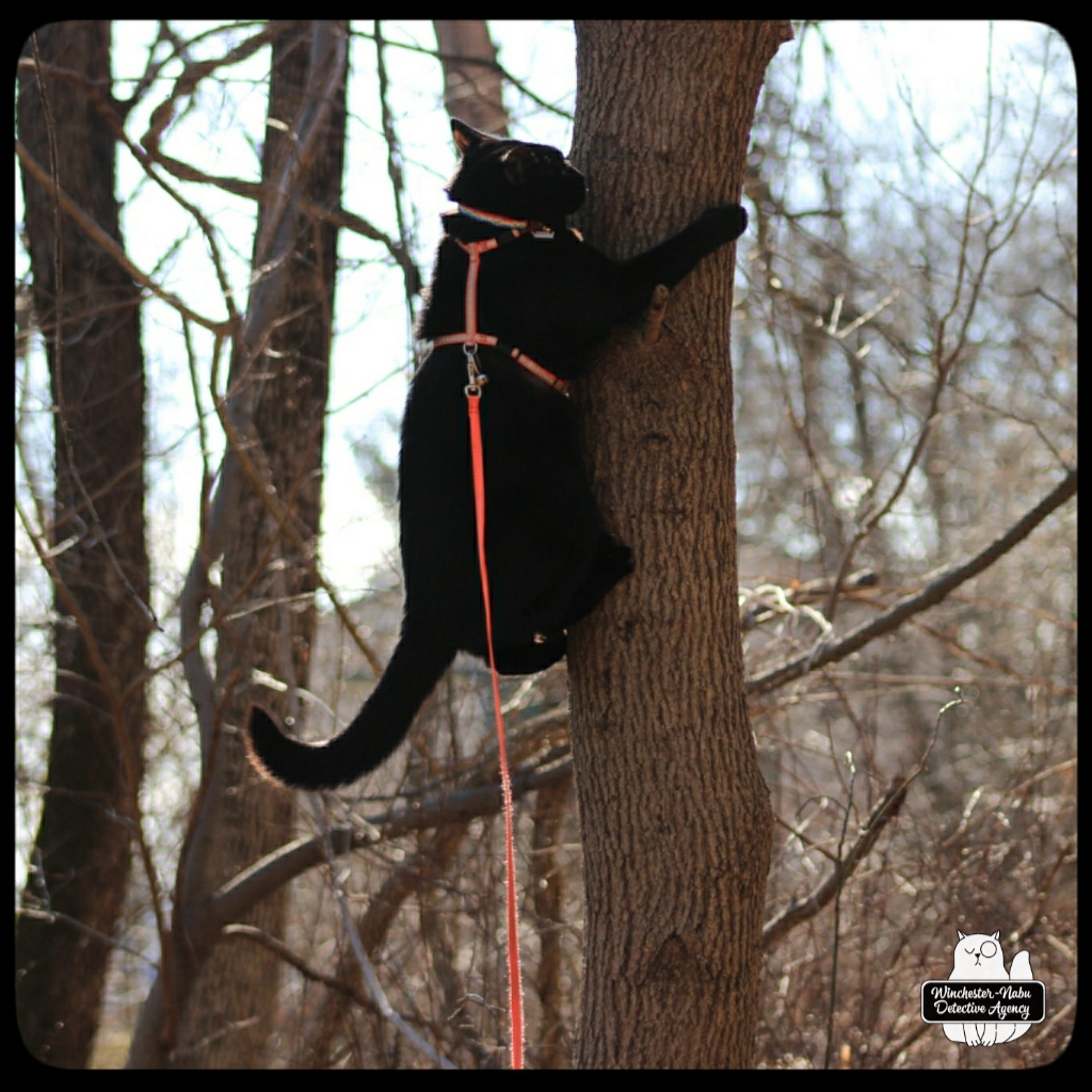 We finally succeeded in getting better images of Bud, the cat who looks like Gus. Our findings are slim. We know that he (is likely an unneutered male) is comfortable being on our back porch and on Oliver’s patio. He shows no hesitation being near doors of the house. He is easily chased off by shifts of the curtain, lights, cars, and Gus chasing him.