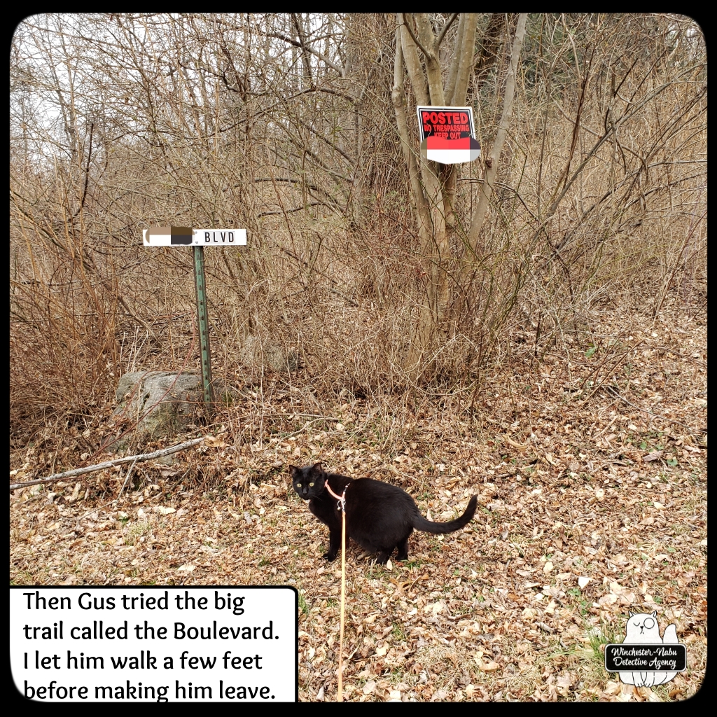 Gus wanted to follow Bud’s scent through the yard and into the trails, but we aren’t supposed to go on the trails anymore! It’s frustrating! We love exploring in the woods when we aren’t on a mission. Now, we have a specific reason for wanting to go and we can’t. We want to know where Bud lives when he’s not here upsetting Gus and Oliver.