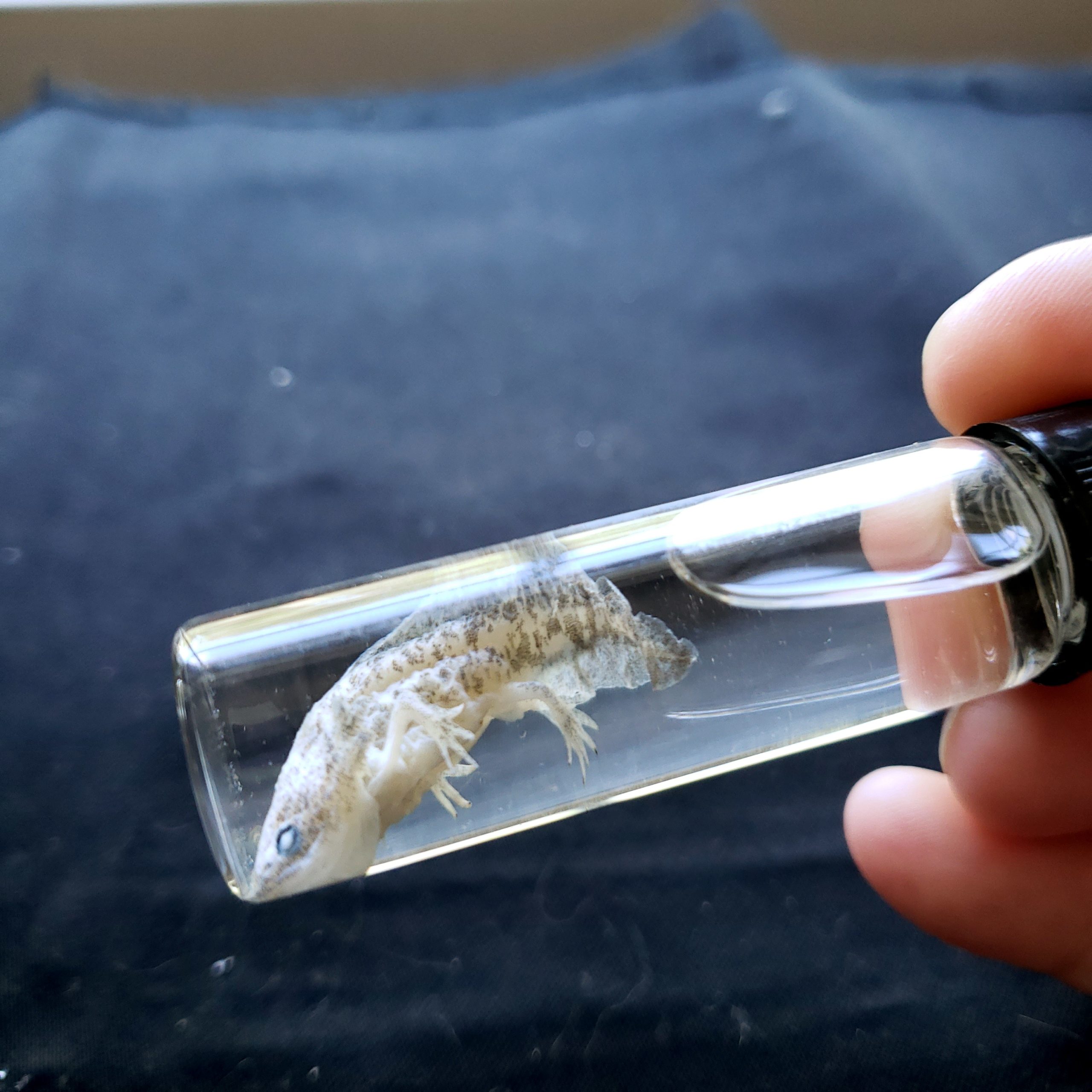 “Of course I remember. We have an axolotl specimen in our collection.” This creature has one of those names that I can’t spell without looking it up. I used to look up “Mexican walking fish” and just copy and paste. Now, I take a stab at the spelling and it still needs to be corrected.