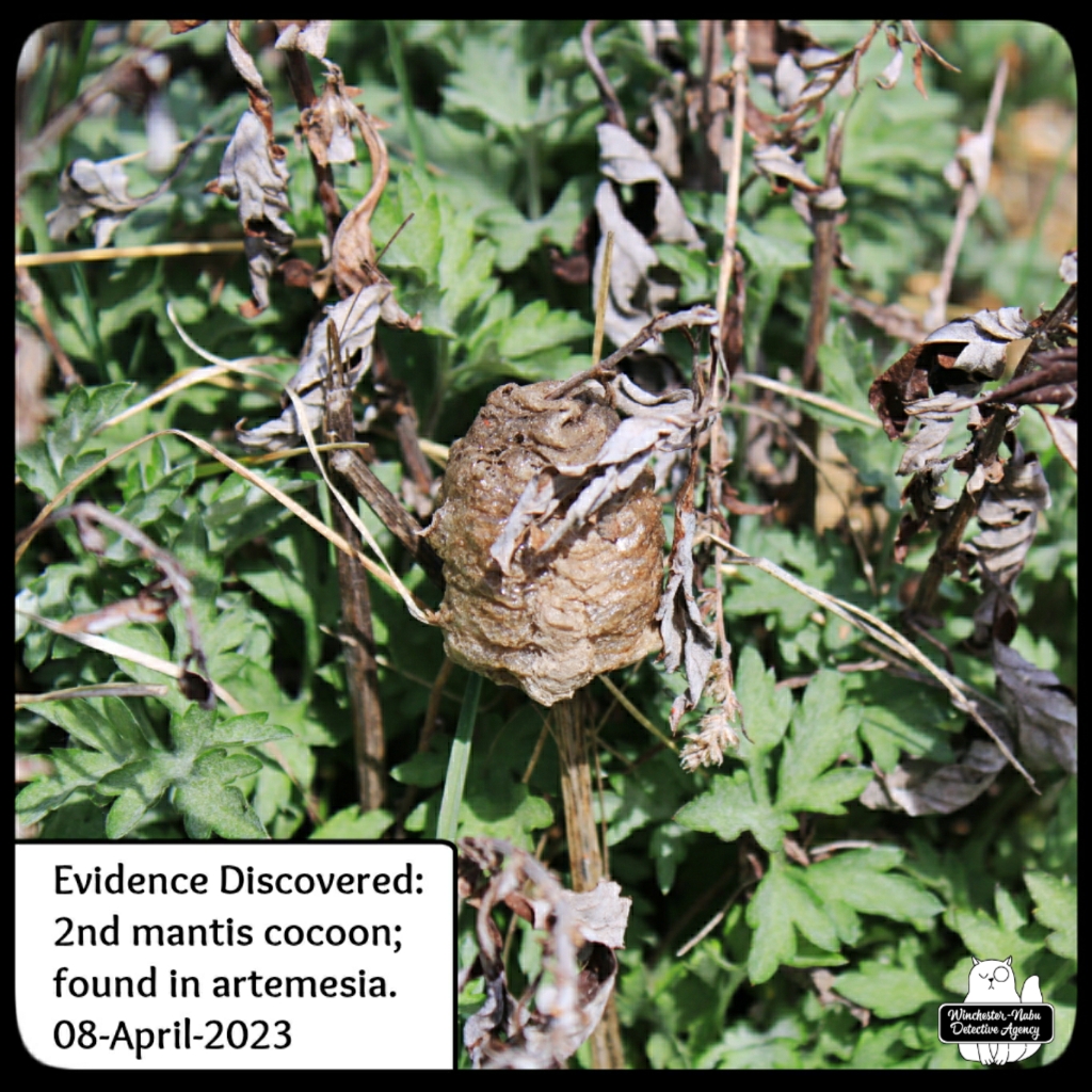 We were also not sure if the cocoons were natural mantids like Chinese mantises or if they were part of the cryptid community like The Mantis, a human-sized mantid creature who has been seen near the Musconetcong River.