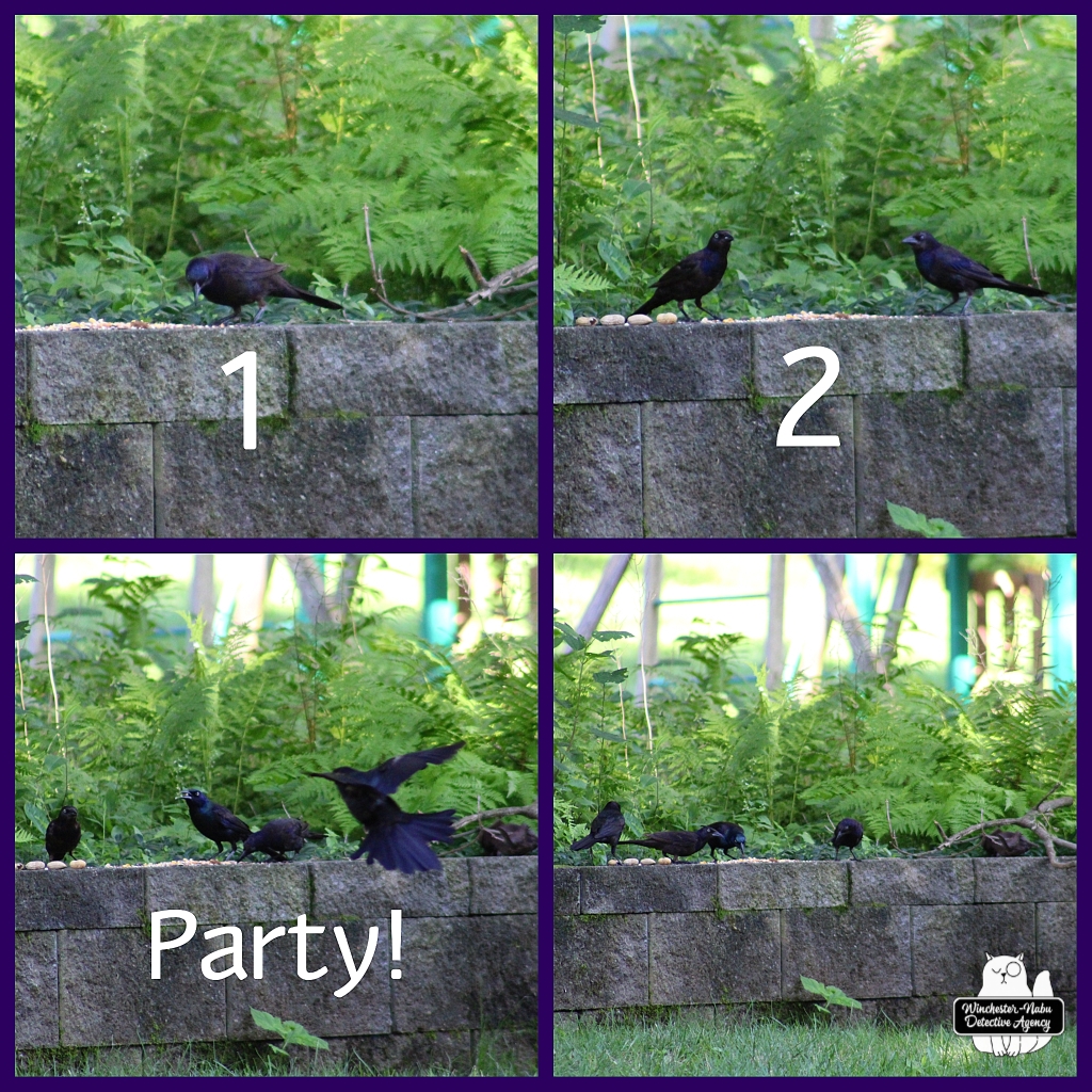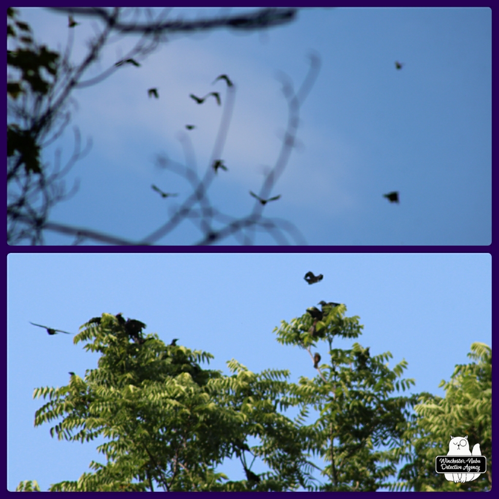 I pointed out that we haven’t been able to get close to the grackles to even begin asking about Madam Mooney. The detectives were not deterred. They said we should continue trying to welcome the grackles just enough to get an introduction to Mooney and eventually ask if her party will move on in the fall.