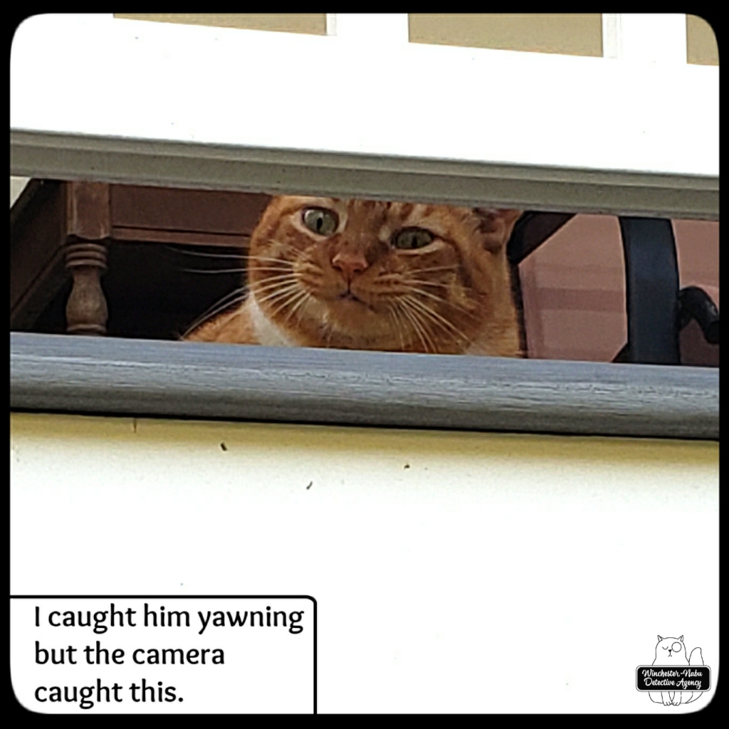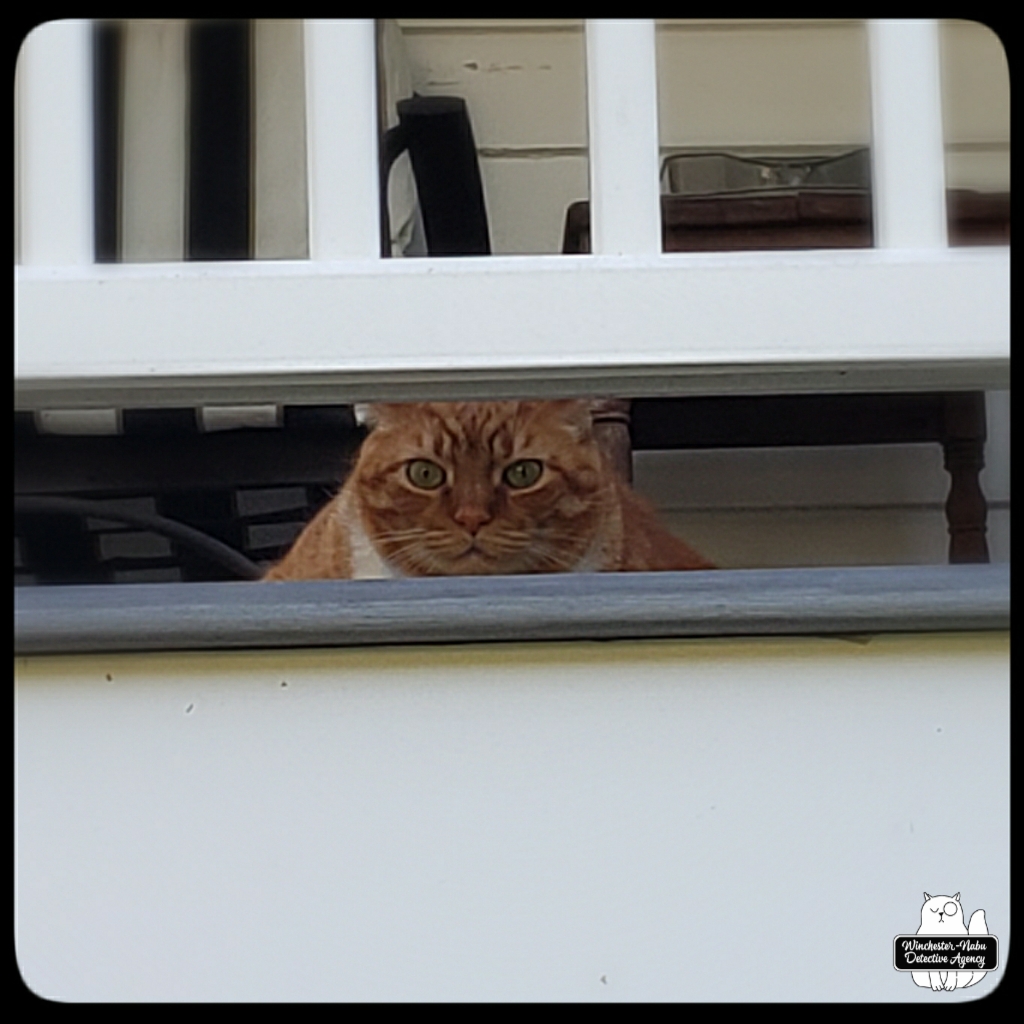 Some changes to the landscape have Guster perplexed. He’s watched as The Grumpy Old Man took over his favorite stakeout location at the corner of the Moretti rock wall fortress. Gus used to sit next to the sundial and wait to see if chipmunks, birds, or moles showed up. Now, there’s a water spigot and a reel for a garden hose. It’s a little decorative, but Golly! It was one of the detective’s favorite places to sit!