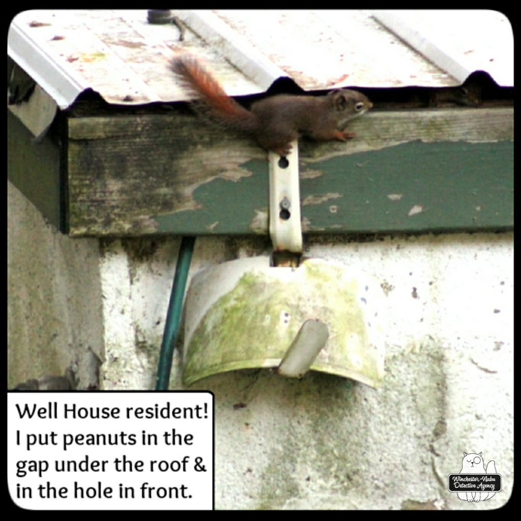 “I heard something,” Gus said. “Follow me!” He ran towards the old well house which we’ve already determined was haunted. Besides a tragic ghost, a family of squirrels lives inside too.