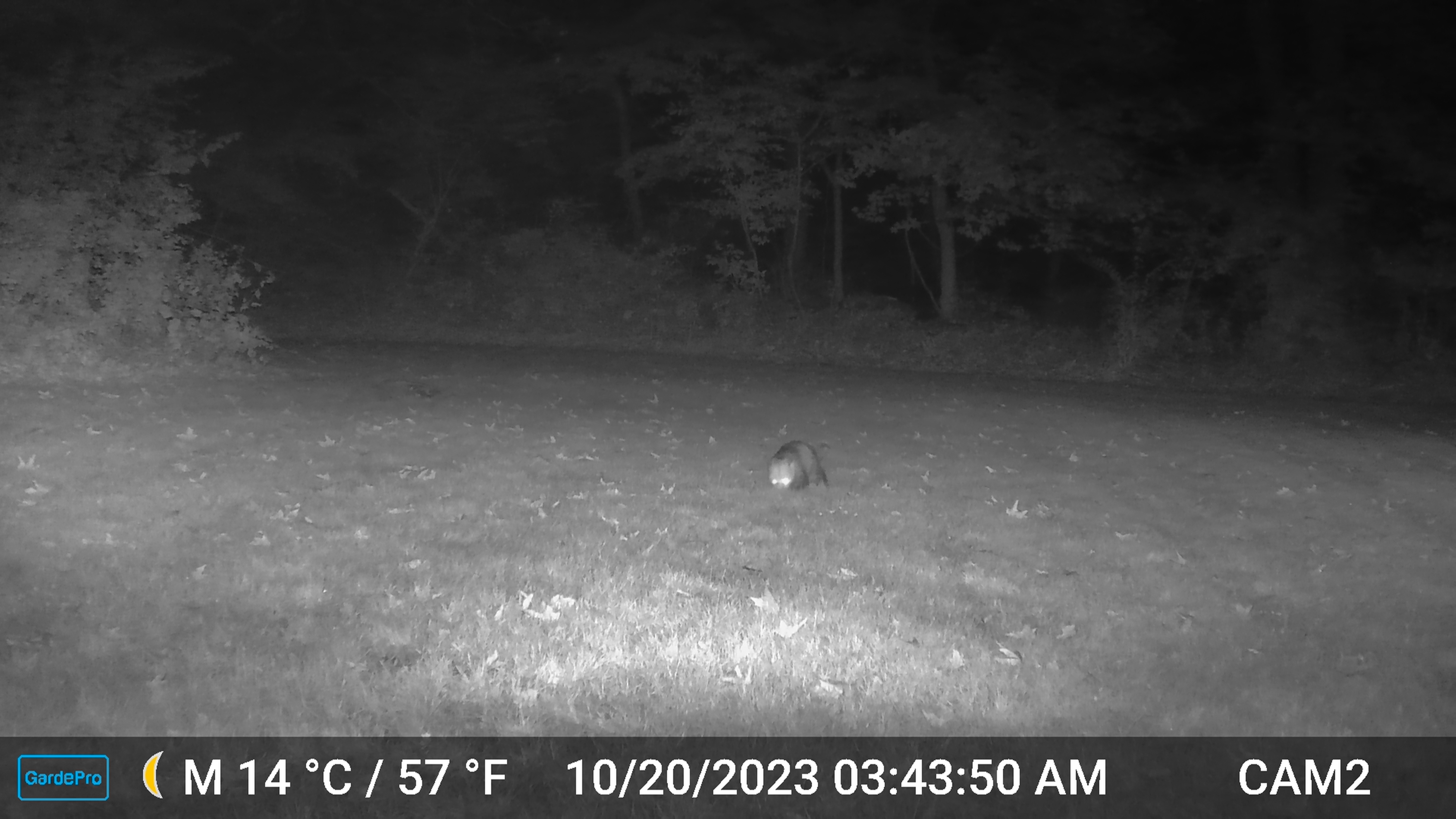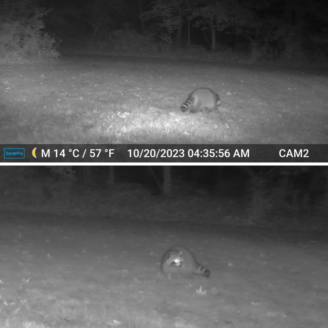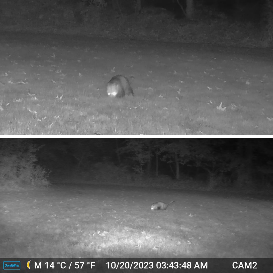 The results of this bird seed and peanut butter tasting were not what we expected exactly. We thought at least one black bear would show up and possibly eat the entire thing, but that’s not what happened. Overnight beginning on October 19, 2023 into the 20th, there were several species that showed up. Not all were interested in the meal. The foxes and rabbits, for example, were no interested. We had positive results with white-tailed deer, opossums, and raccoons.