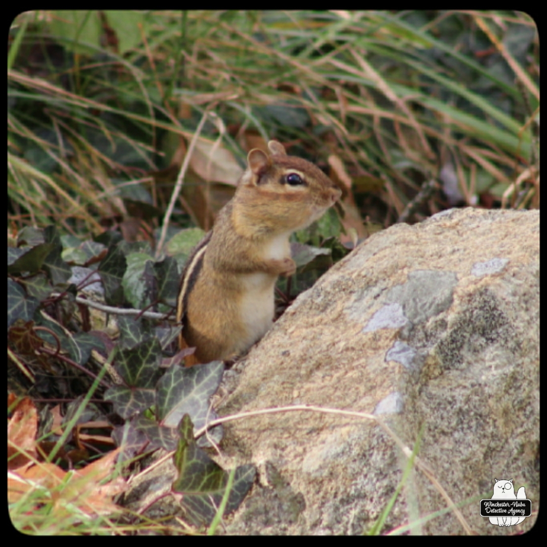 Here are some photos of Chipcent Donofrio who wisely makes his way from a burrow entrance all the way over to the Big Rock for food and carries it back while avoiding Gus. He has to run underneath the mobile command unit to do this: