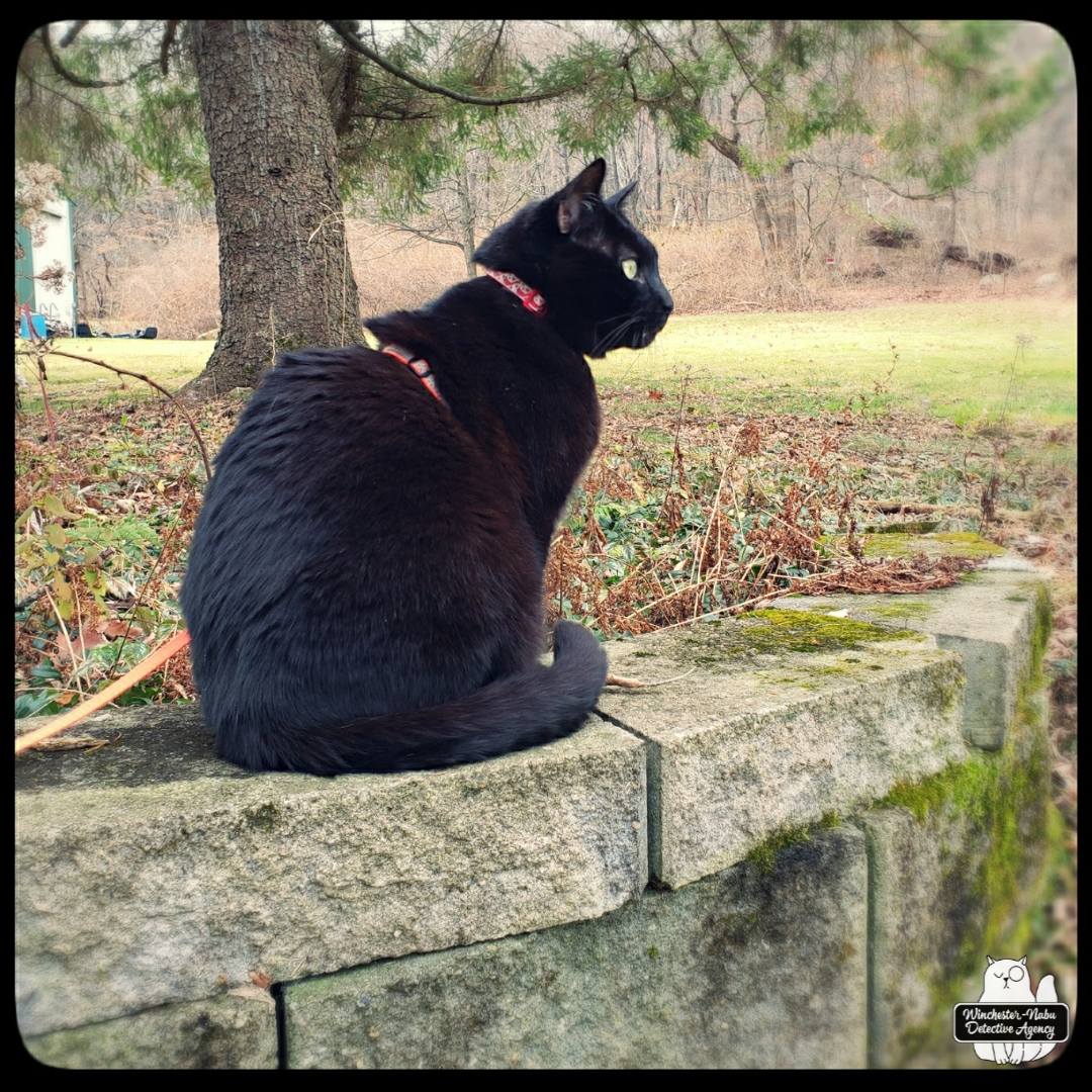 We went around Gnome Grove and stopped at the garden wall. At this time, there are stacks of firewood precariously balancing on the cinder blocks. Since it’s winter, the fairies and gnomes have been relocated to indoor assignments. It’s too bad because we could have used their eyewitness accounts about what we found in that garden.