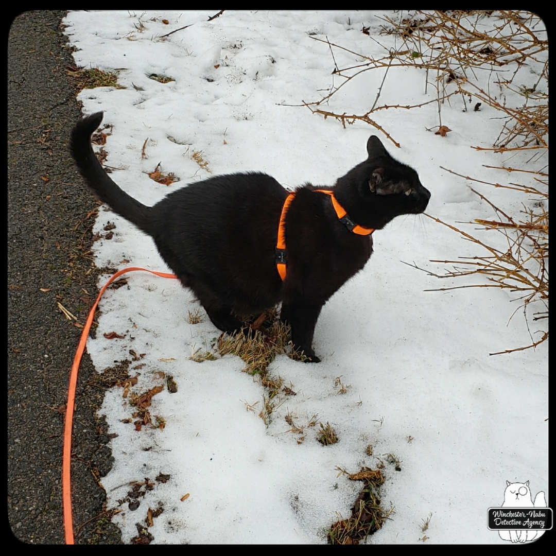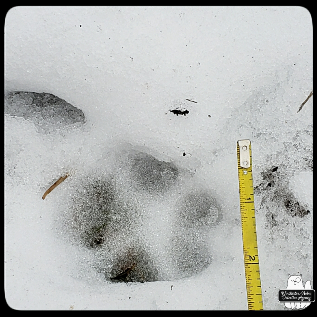 Late January 2024, New Jersey finally had decent snow. The problem living in it was that it was mixed with rain and ice making roads treacherous. Our driveway was a glacier for over a week. I shoveled, but I was not going to try and chop ice three-inches thick. For the Winchester-Nabu Detective Agency that meant days stuck inside, but when we did get outside, we had some wildlife tracks to examine.