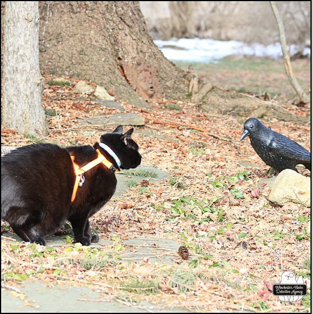 Around the time of this meeting between Gus and the Goddess, we’ve had two ravens and I’d guess four crows who passed over the Winchester-Nabu estate. I wasn’t sure I’d be able to tell the difference, but people were not kidding when they’ve said their sounds are completely different; if you get to see them up close their bills are another clue. Both are exceptionally intelligent birds who can speak and solve puzzles.