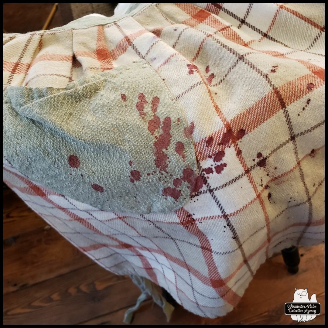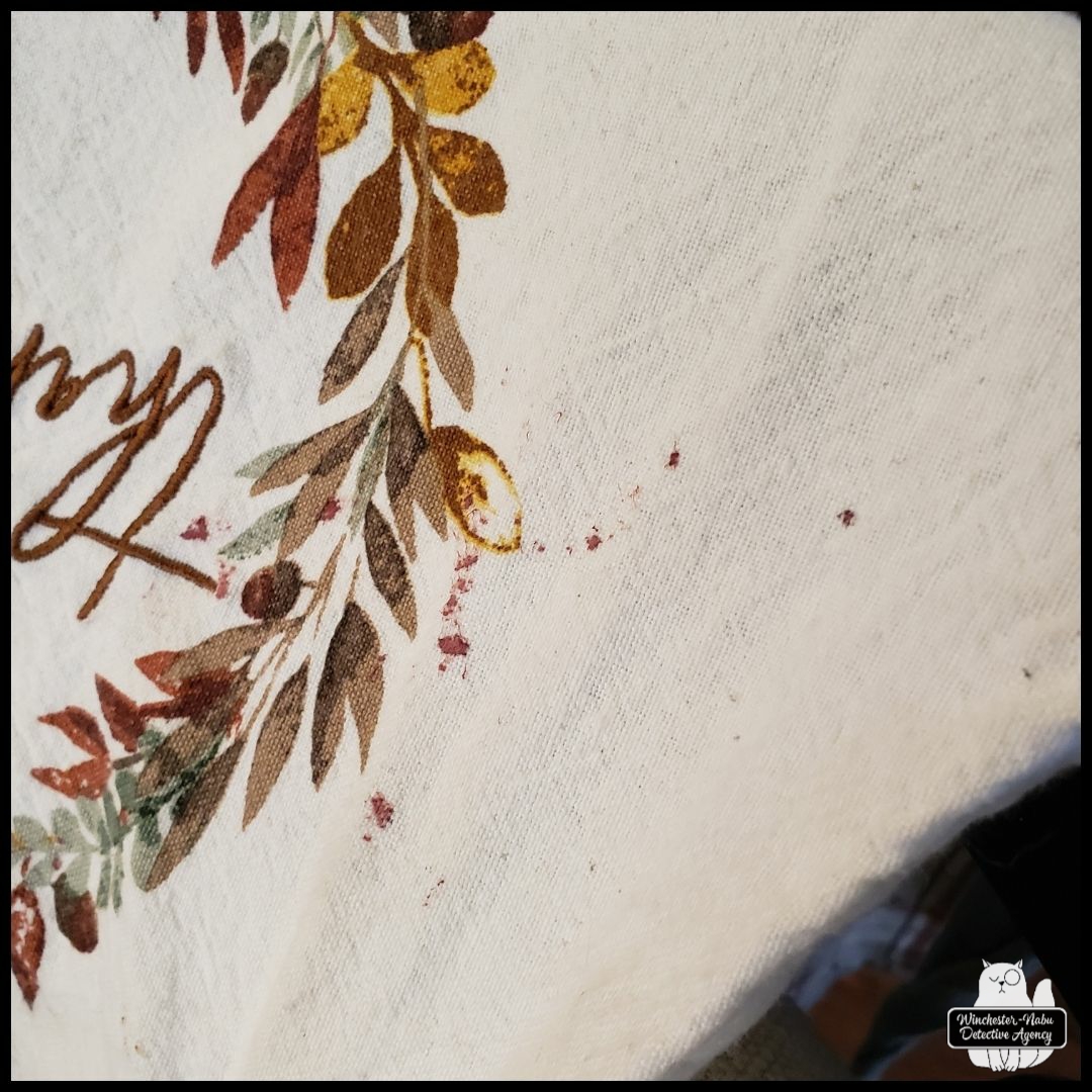 I never thought all the workshops and book reading I’ve done on blood spatter analysis would come into my real world. Before the blood all over the kitchen was cleaned up, I tried to memorize where it was and what it looked like. I took a couple photos trying not to he insensitive while waiting for anyone in a first responder uniform to show up.
