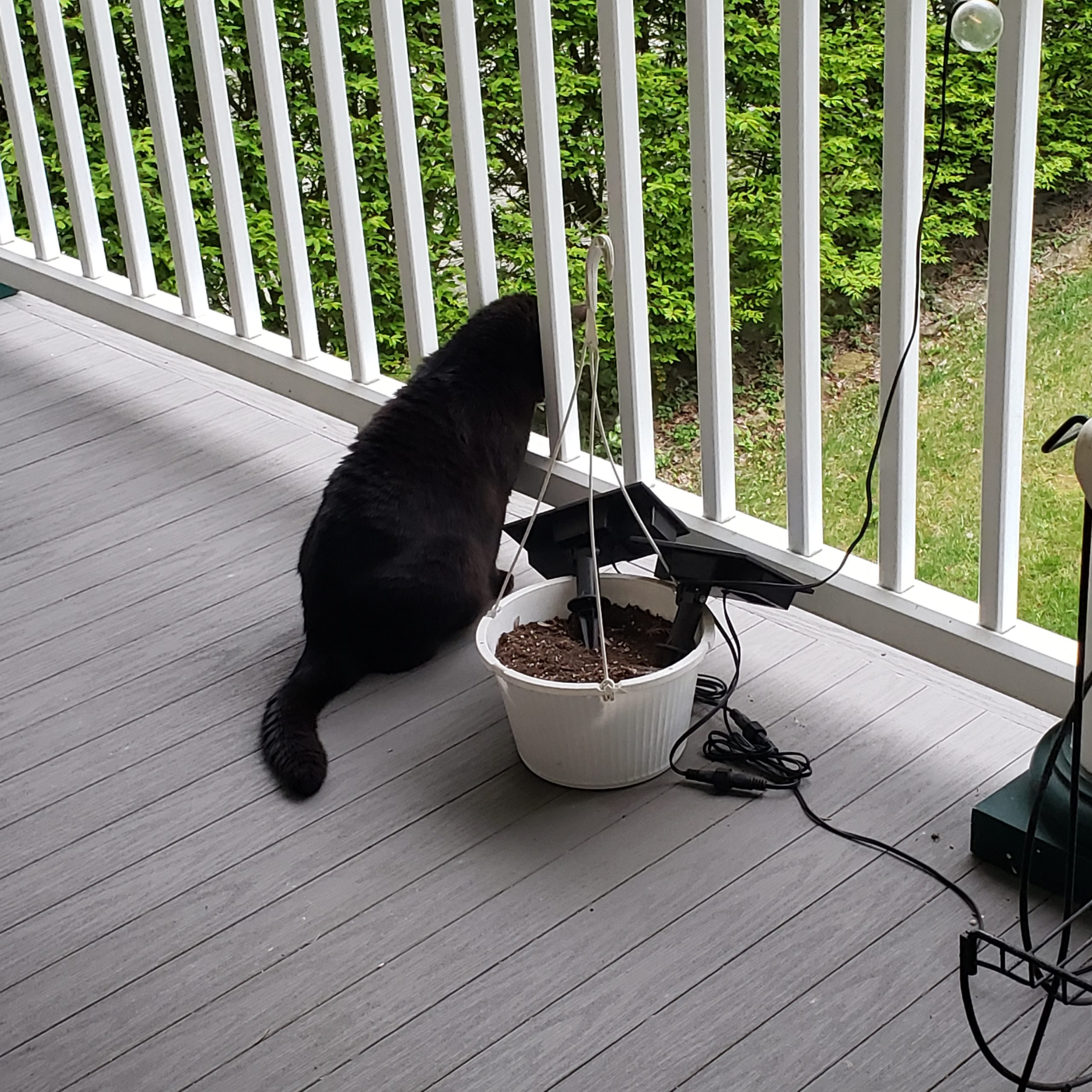 The only time I was able to previously document this cat with 100% certainty was Year Six case file no. 41-301. Going back even before that case, we presented a dossier on cat sidhe or fairy cats (black cats with the domino dot markings). Back then, I had become enamored by doppelgängers of Gus because I kept seeing them on the internet; then I learned cats with those marks are the special cat sidhe and it was like part of my brain was always on the lookout for them like the Predator in scanning mode, but a friendly kind.