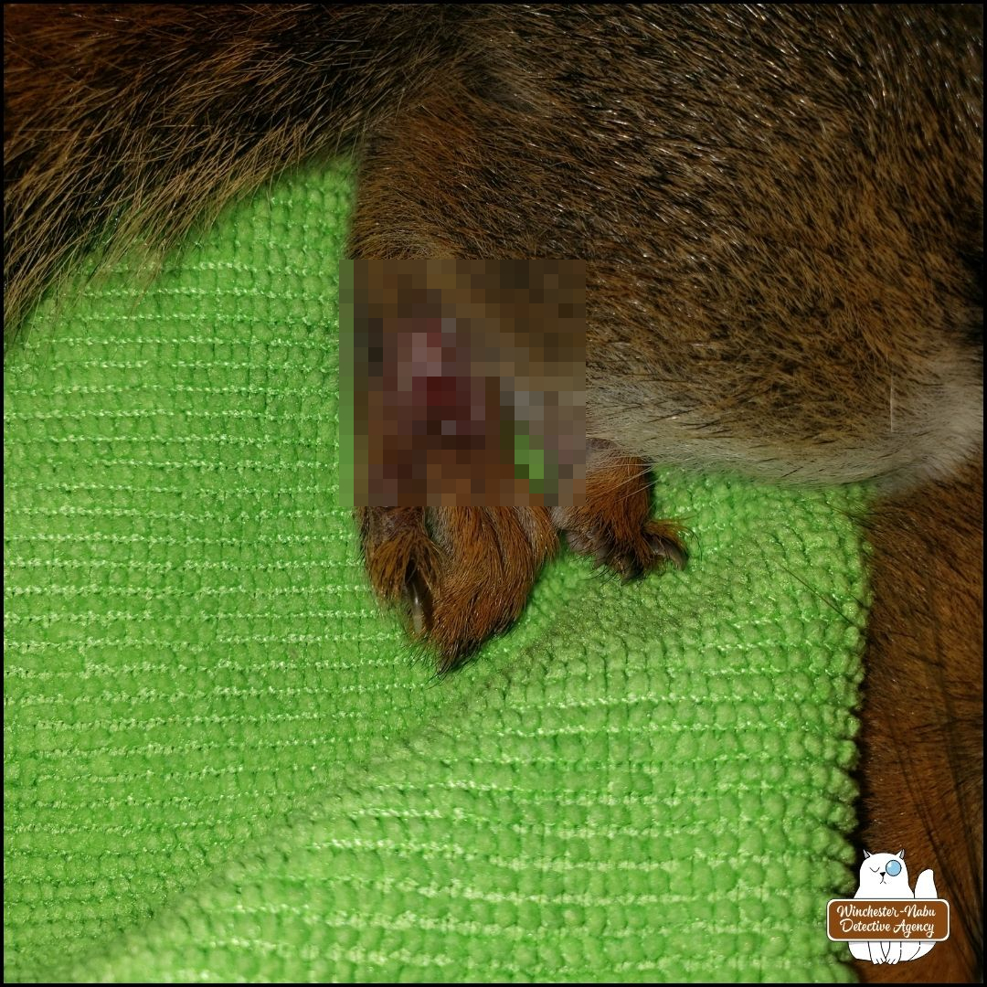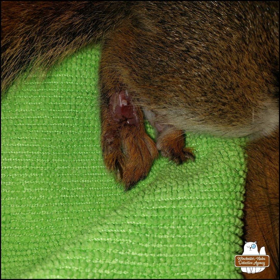 “No, it’s a red squirrel and they are very tiny, not much bigger than a chipmunk. He’s still breathing. I have to do something.” If you can imagine me spilling out all those words and more as one long sentence without taking a breath like an auctioneer, that’s how I felt I was speaking.