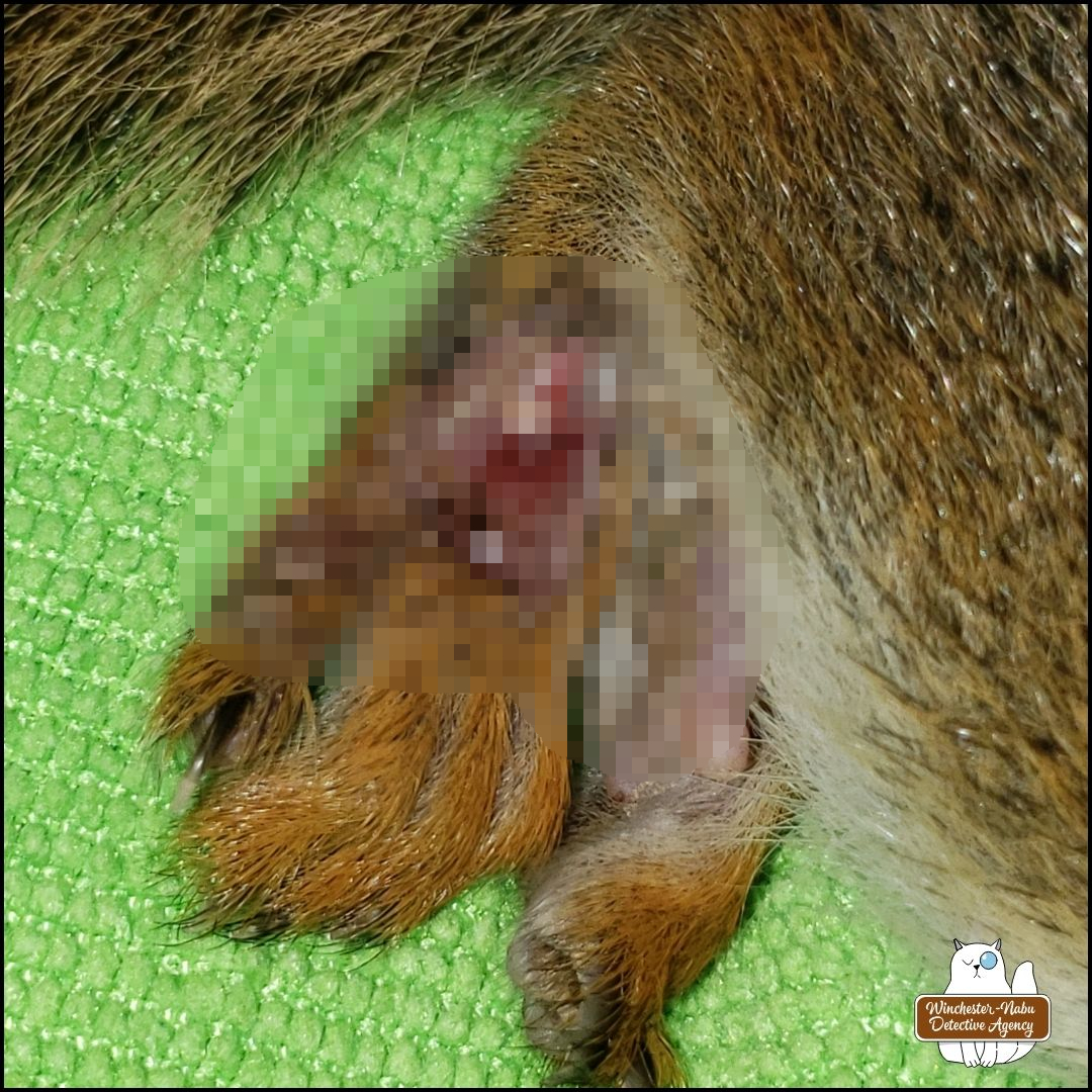 I thought the hardest part of this case would be keeping Gus away from the squirrel. It wasn’t. He knew something was wrong and although he followed me around the house in my frantic state, he never tried to get near the patient. I couldn’t bring Gus on that long car ride to keep me company either. He vomits usually around one mile of driving.