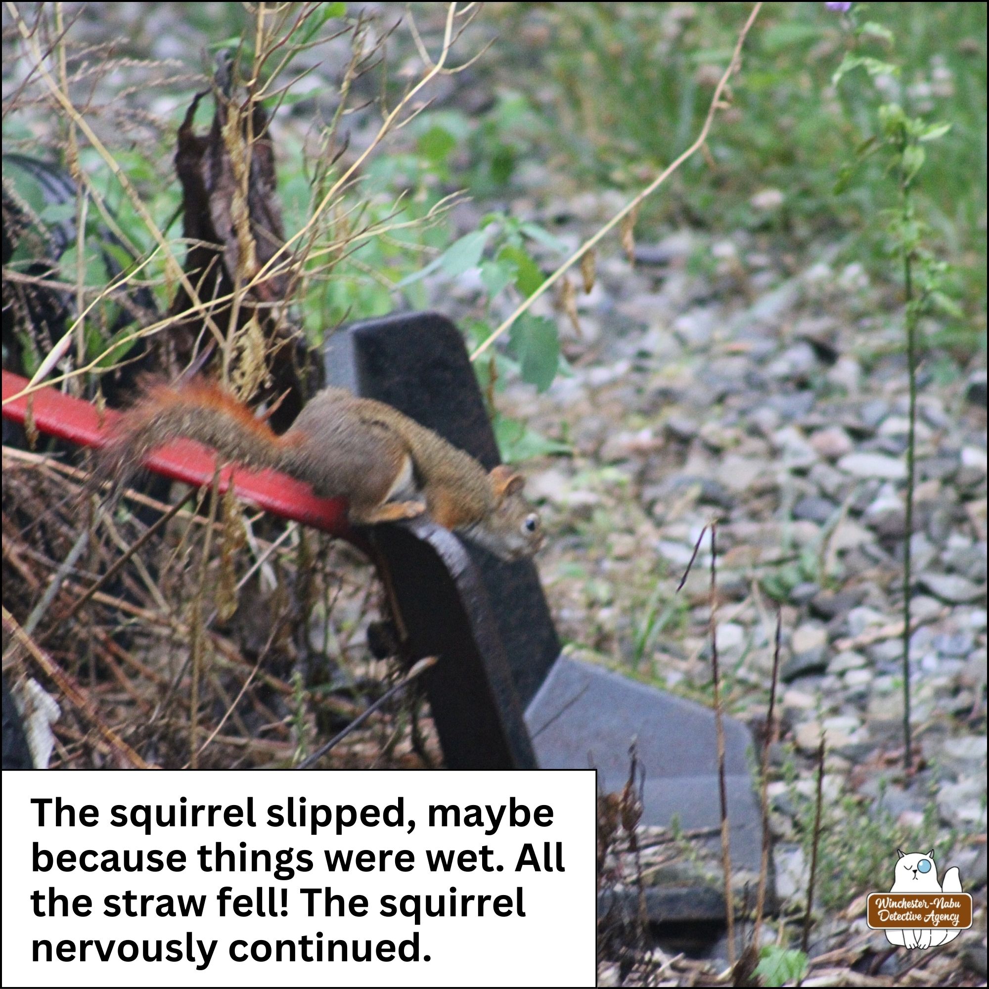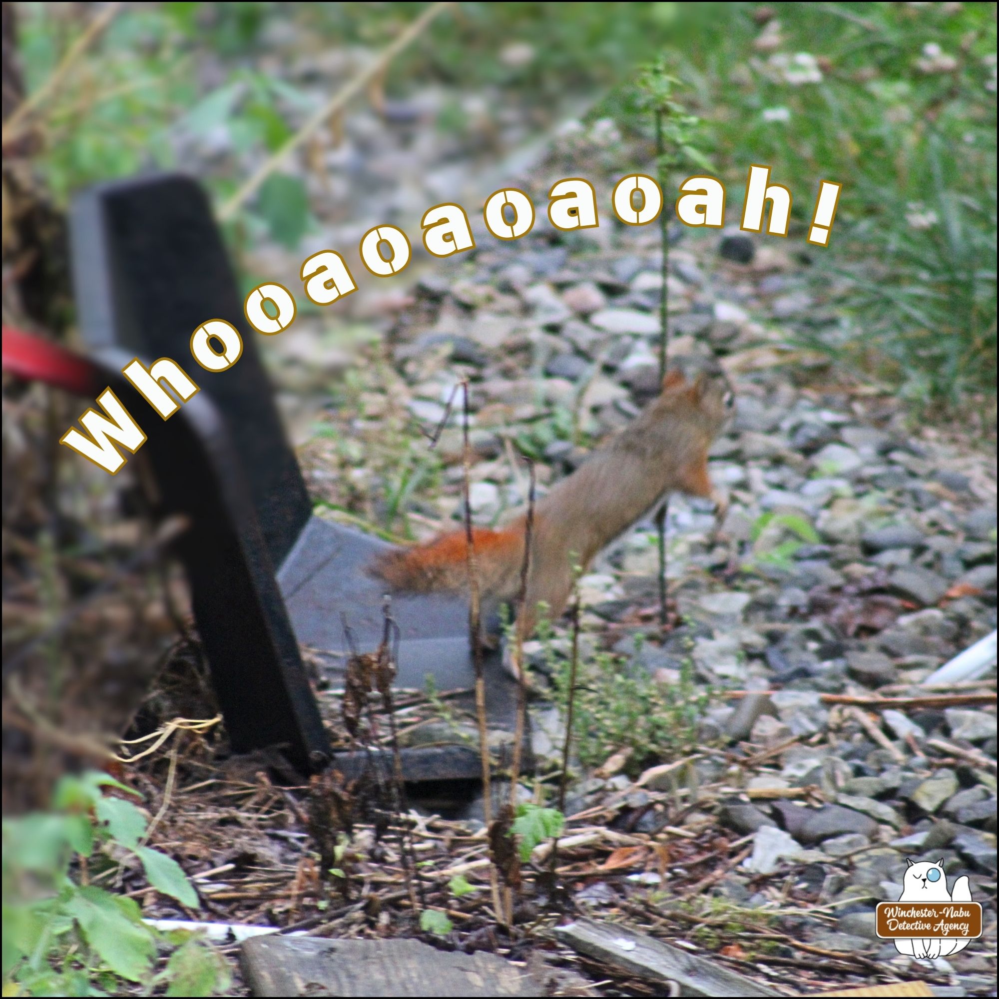 I told Gus his job was to keep looking and to courteously get information from the squirrel. I went out the back door to make the rest of the snack distributions and peanut payments in order to keep the peace between the Bird gangs and the Chipmunk Mafia.