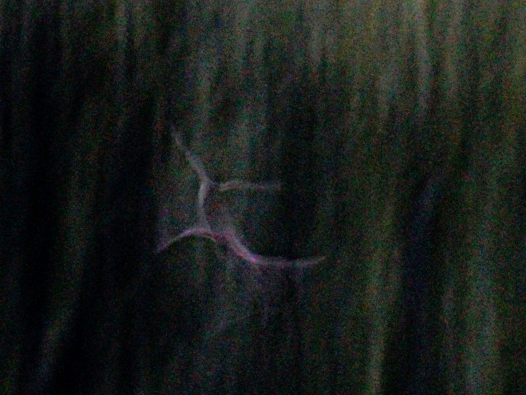 What is that figure that looks like it has arms and legs spread out? Could it be a bat in a bad photo or something else?I’ll refer to this peculiar object as The Subject since it is what stands out in the photo’s composition even if unintentional. The Subject reminded me instantly of how Hieronymus Bosch painted some human figures—lanky, exaggerated, pale, questionable features. In the case of this Subject, there doesn’t appear to be a head. The “arms” and “legs” (if that’s what they are) are spread out like someone falling through the sky.