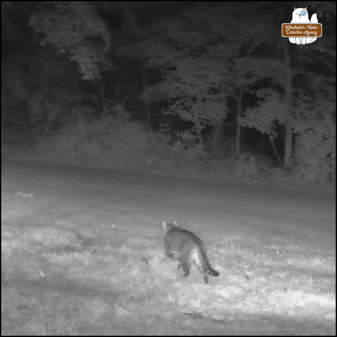 July’s killer was Bud (aka DoppelGus).- We’ve also seen videos of a skinny black cat crossing through the patio near Gnome Grove and in other areas of the property.