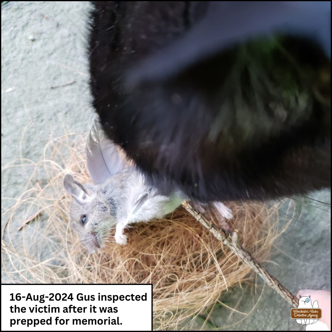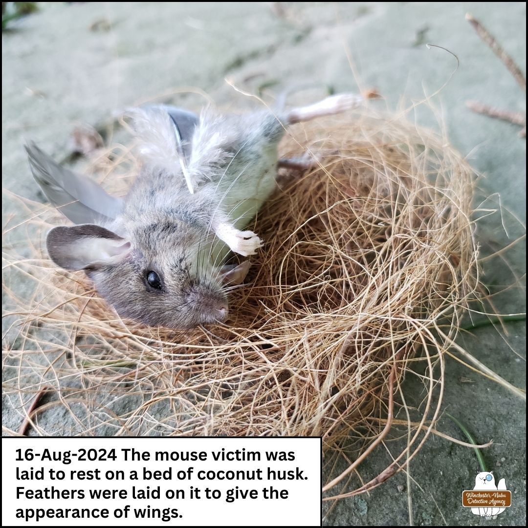 The cats agreed and we pressed on. We had a couple more details about the victim to review before moving on with the suspects. We didn’t know the names of either of these mice. We didn’t know much about them at all, in fact.
