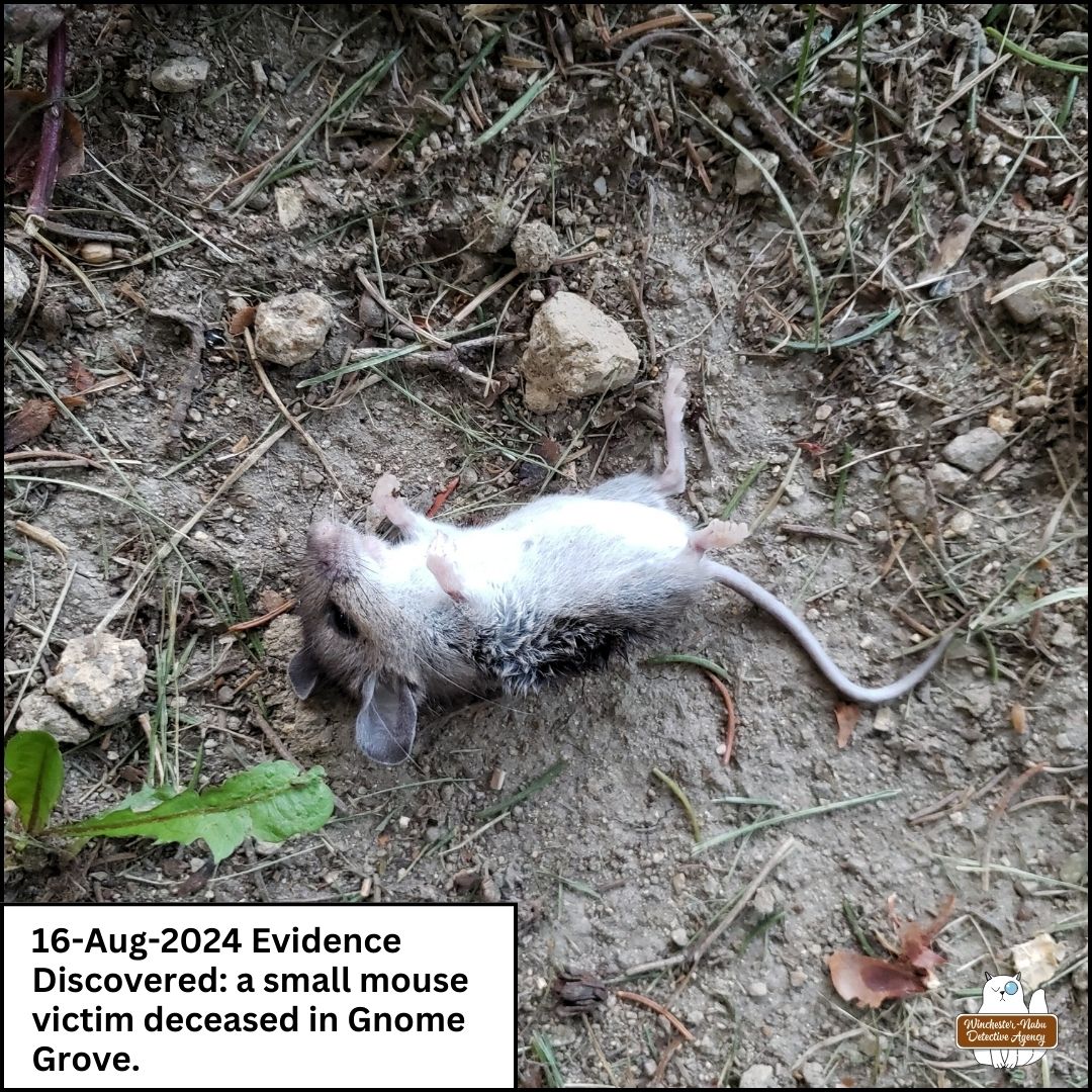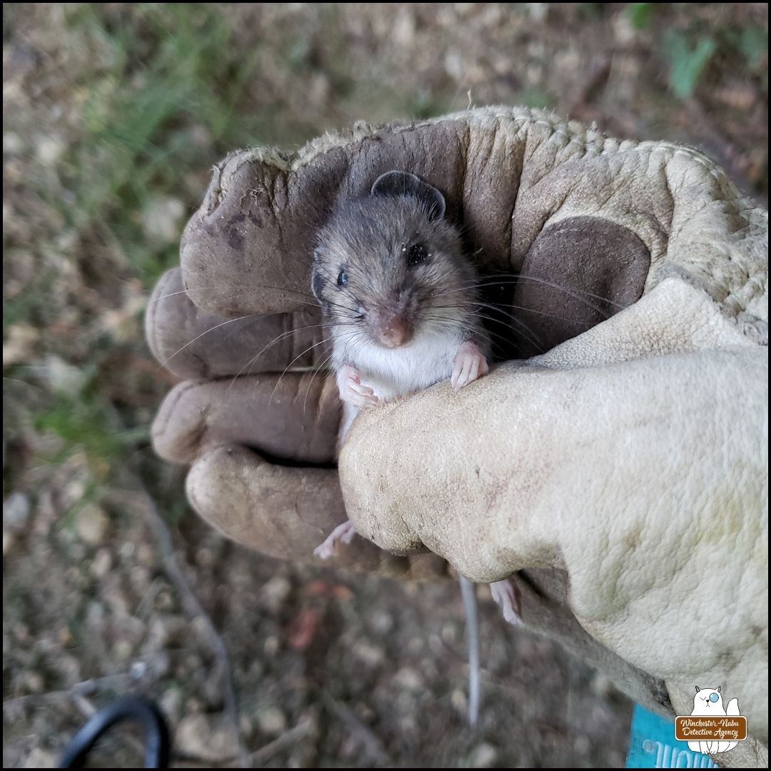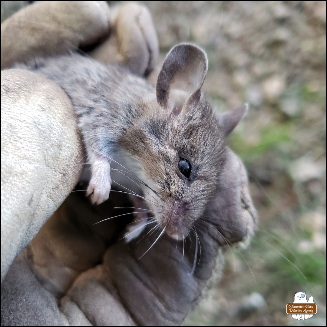 Once we were back in the Winchester-Nabu Detective Agency offices, I uploaded the photos to iNaturalist to confirm whether the species (Genus Peromyscus). I received confirmation that the victim was a North American Deer Mouse.