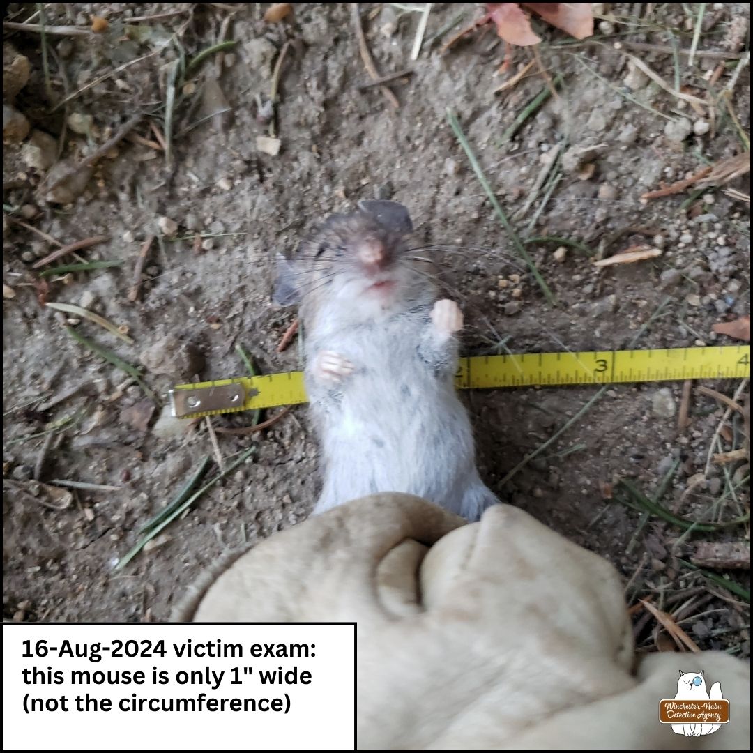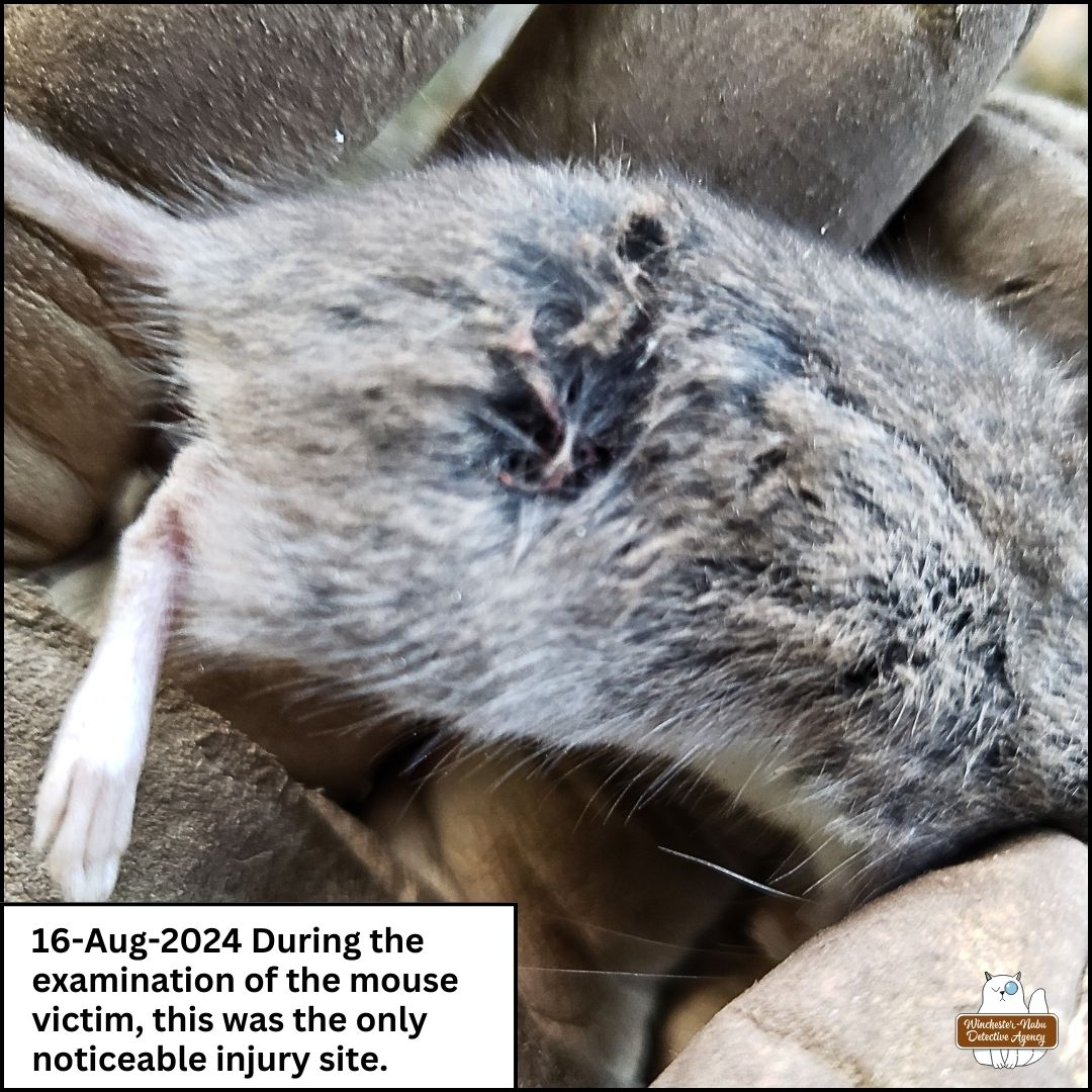 This breakdown is uncannily similar to our previous case! At the time of finding this mouse’s body, here’s all we knew: