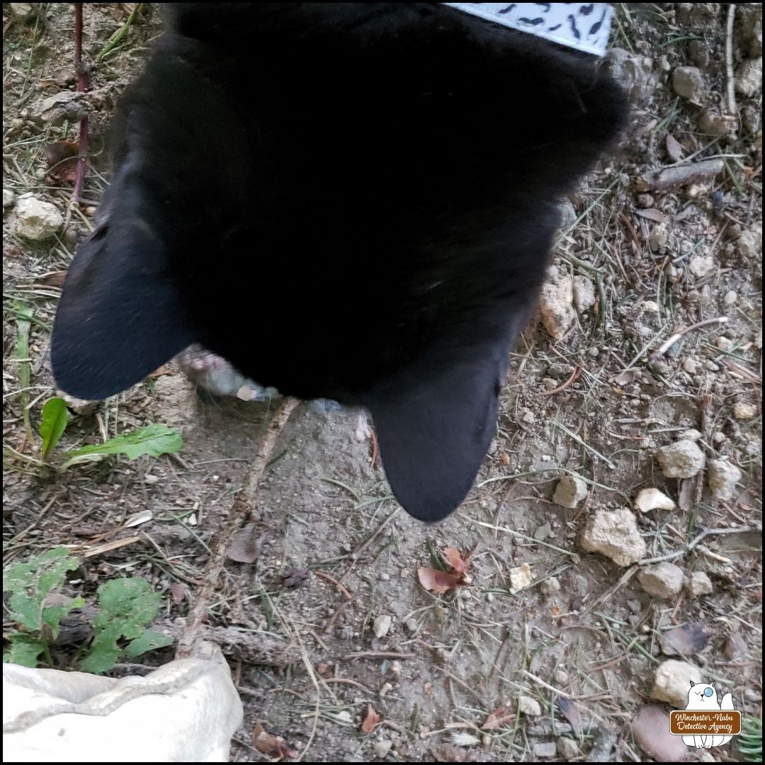 The Grumpy Old Man has been deleting the security videos before I have the chance to download them. He doesn’t think they’re important. Yet, cats have been seen on Oliver’s patio which is kind of close to Gnome Grove, the crime scene location.