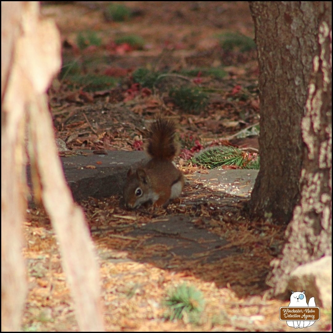 The cat detectives investigated a serious case of vandalism and attempted robbery when the supply of deer corn was dumped all over the porch.