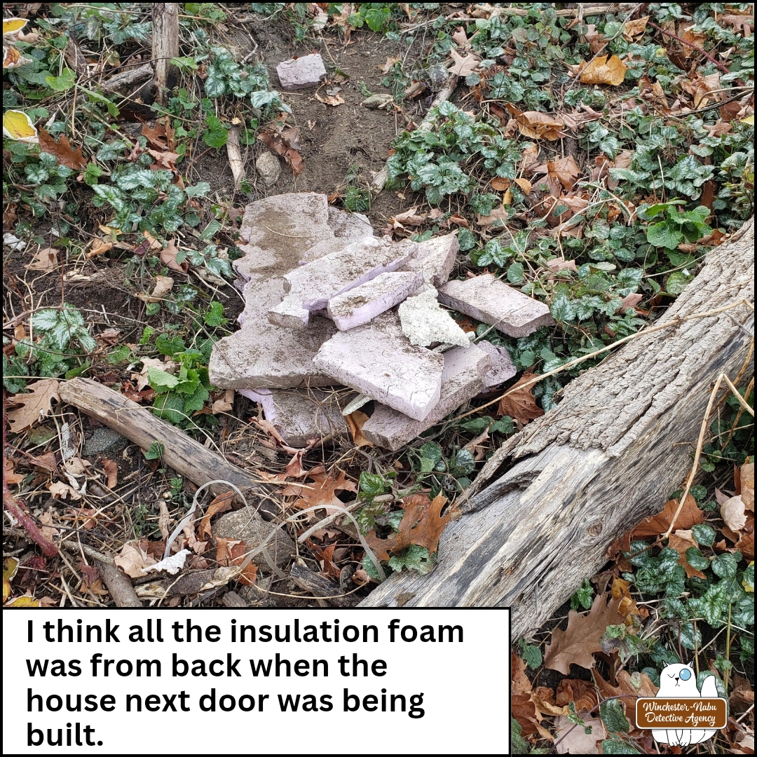 Then I found basic plastic bags, wrappers, and bottles. Some cans from cheap booze (it’s always the crap stuff). I even found some kind of car part! The Grumpy Old Man called said it was a fuel pump if I remember correctly. There was also a mouse toy caked in dirt which made me wonder how it got there. But I’m pretty sure the insulation foam came from next door when the house was being built and there was yet again a lot of wind.