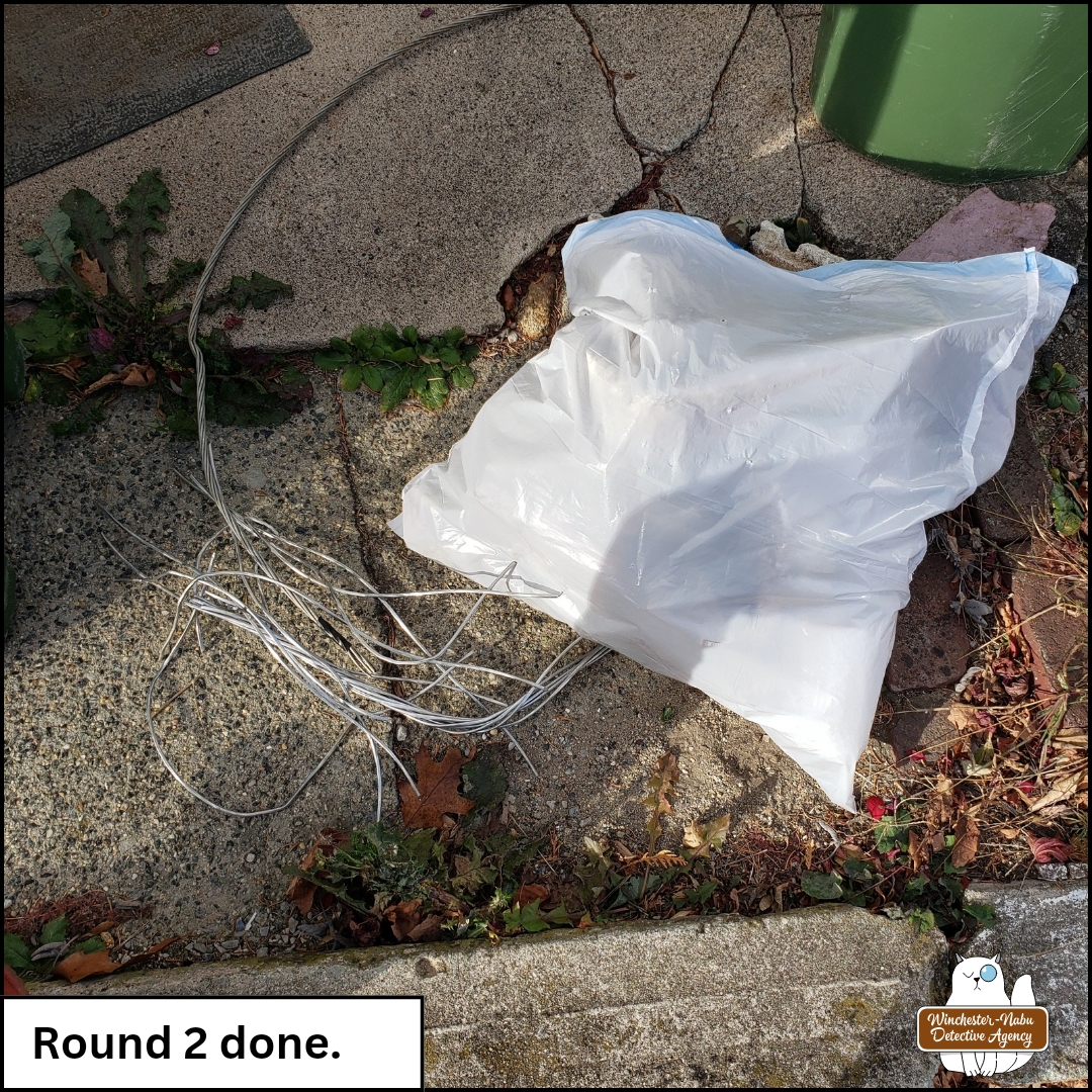 Sometimes, a bear will steal a garbage bag and walk away with it until it finds a safe spot to root through looking for food. With all these cameras around, I haven’t spotted any bears or volkolaks doing that in a long time.