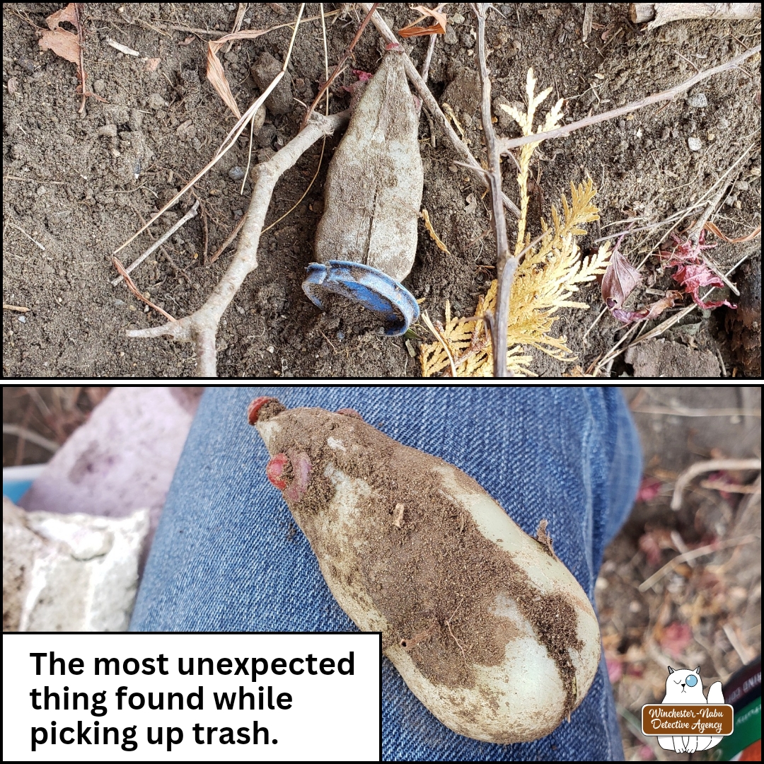 Oliver sat in the comfort of a chair on the balcony. Gus stayed outside under the watch of other humans. I, the biographer and keeper of all things data related, did the trash clean up alone this time. We have no way of identifying individual culprits in a case this messy with such an abundance of random evidence. Nonetheless, a lot of garbage was taken for proper disposal. Next time, Gus will probably join me.
