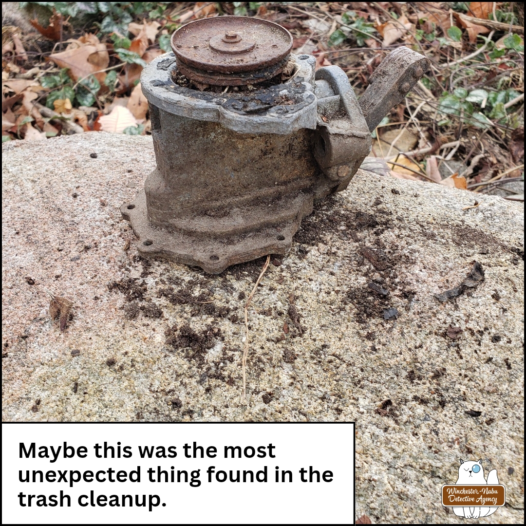 Gus and I have taken hikes on public land and done our share of litter clean up. There hasn’t been a time when we haven’t seen anything. Plenty of times, the items are large and heavy, too big for me to carry around and get back to the car. I can say, the one nearby “preserve” trail that we’ve enjoyed a few times has gone through some changes. Now, there’s less trail—at least from what I could tell and it was a day with easy visibility; but there was also less human garbage. I didn’t venture off-trail as much as Gus wanted and generally, that’s where you can bet you’ll find someone’s party spot. Also, for a “county preserve” there are plenty of signs warning that it’s private property. That left us with a trail that’s about a quarter of a mile maybe.