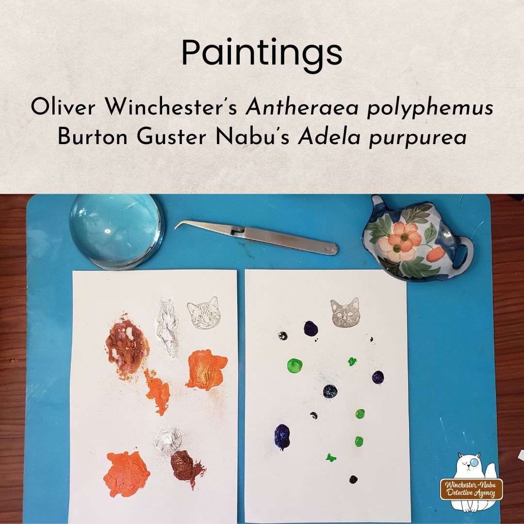 The paintings by Ollie and Gus were named after moths who have spectacular color patterns and look like magical fairies!