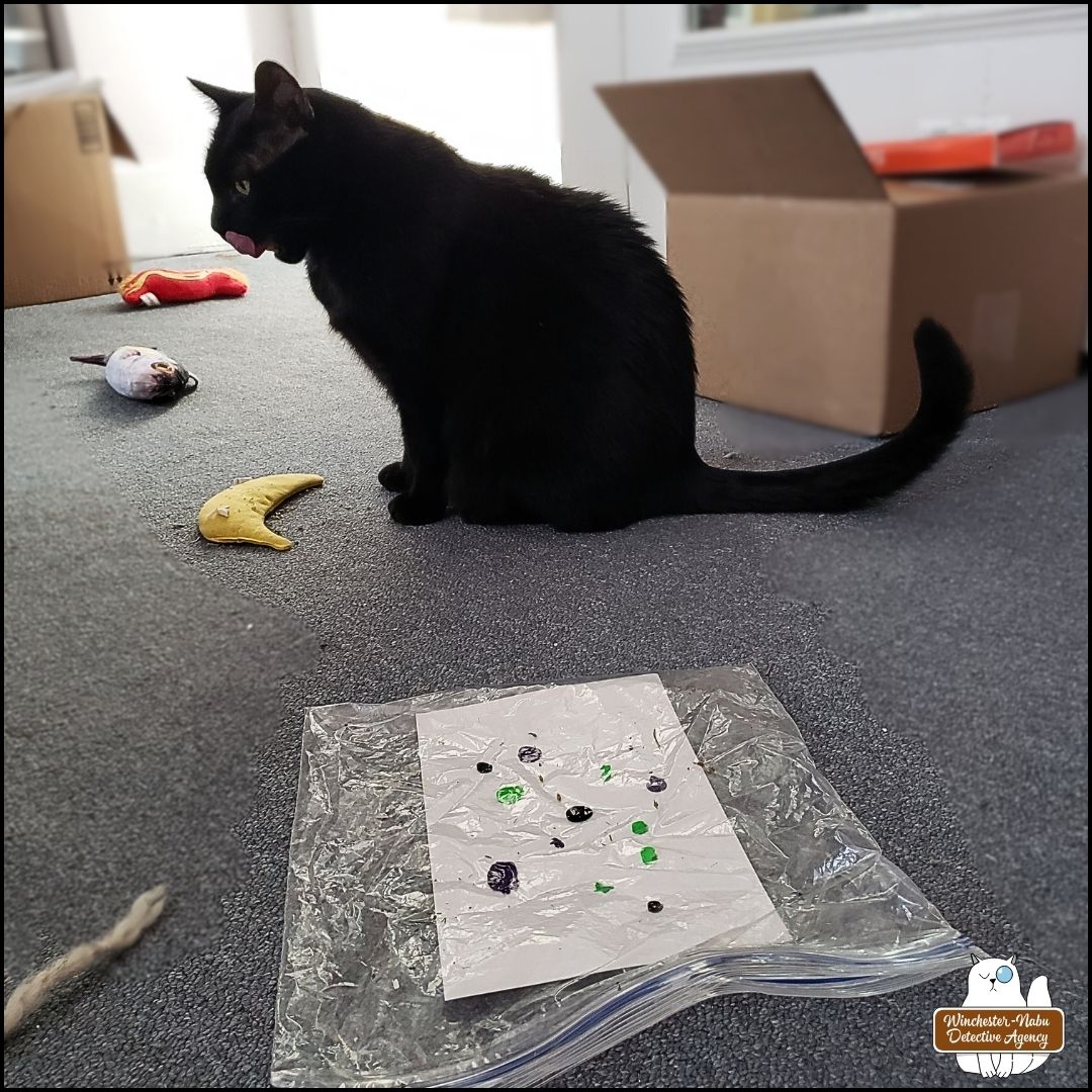 Art heists are no joke. Gus and Oliver did more research than ever and talked to a lot of other critters about the stolen black cat stretching mural. Quicksilver thought the theft was merely a prank. He’s so fast that he’s capable of stealing nearly anything! He did have help though. These wooden panels were more than one squirrel could lift. However, Quicksilver has some special abilities besides super speed. He has the strength of a hundred squirrels as does a nephew of his. The two of them stole the panels and hid them “for safe keeping,” he said claiming that they didn’t want to see the artwork destroyed by the town or some real estate developer. The mural was taken to a small local museum in Morristown, New Jersey to be on loan from the town.