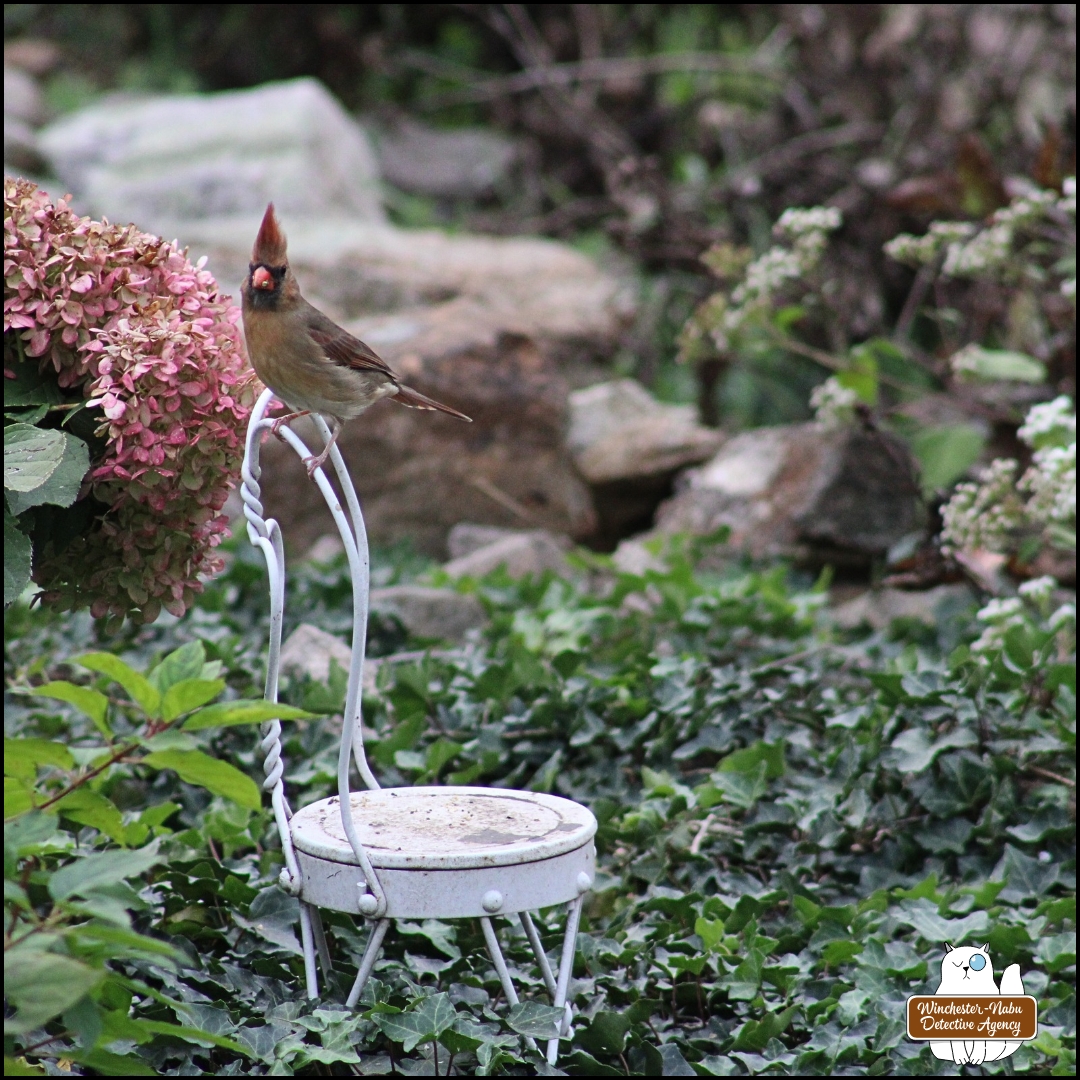 During all of this, Oliver was in his suite watching from the large doors. He can see nearly everything that goes on from there. Plus, his sunken patio provides a place the birds (and stray cats) happen to love.