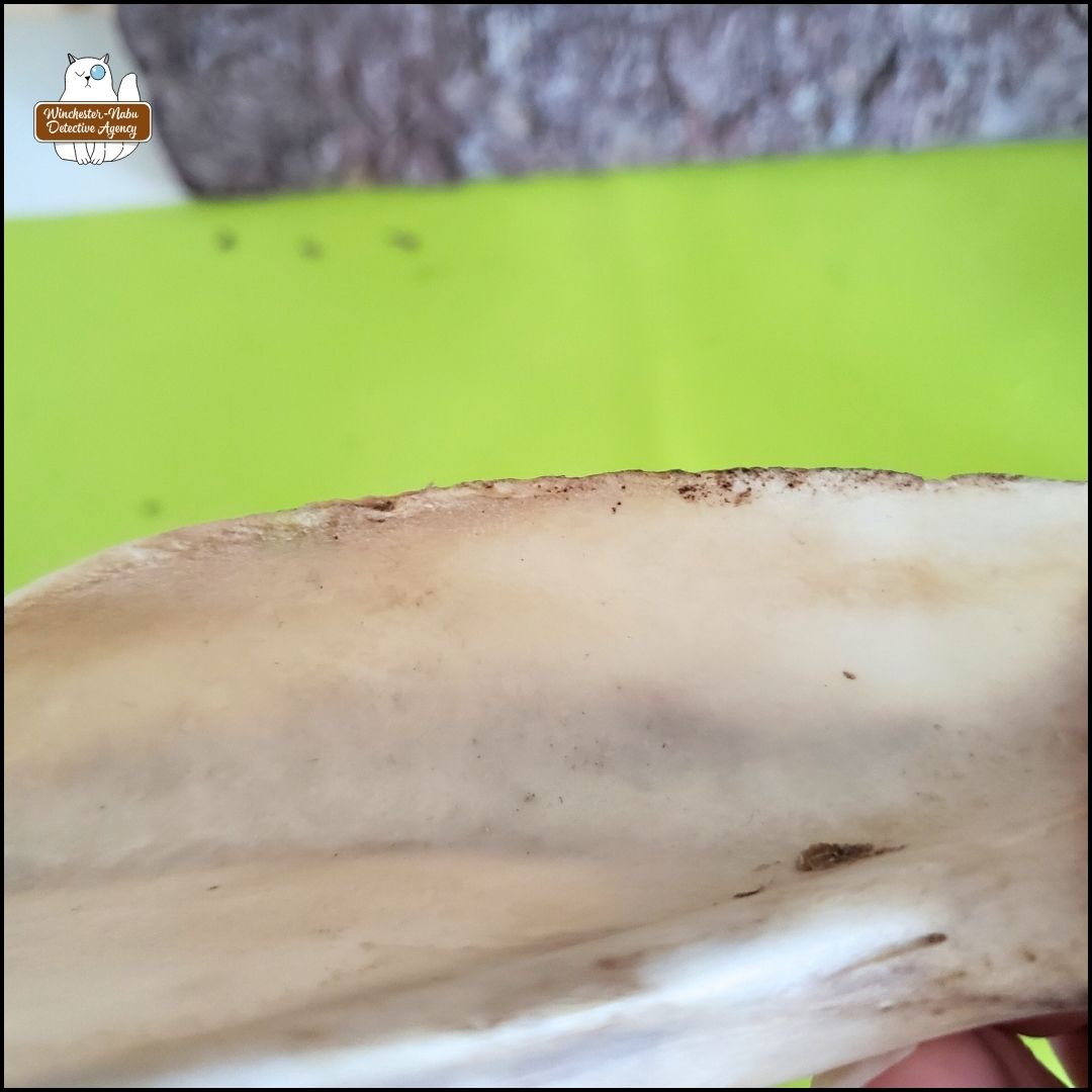 Sadly, we have no information on the victim in this case. Gus and Ollie truly believe the death was an accident since the location of the bone was found in a high-traffic area. Due to the size of the bone, it’s possible the victim was male. Lacking identifying documentation means we cannot update our family trees in the database for the cervidae.