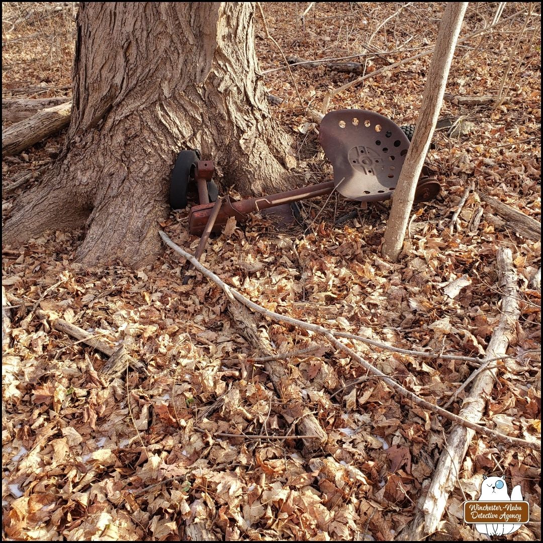 I slipped the bone into my pouch and carried Gus the rest of the way up the hill hoping to find more evidence. We struck out. At the top, we were able to enter a cemetery and peacefully walk around. There’s a meadow after the section for graves. It was likely filled with ticks, but I went through it anyway searching for more artifacts.