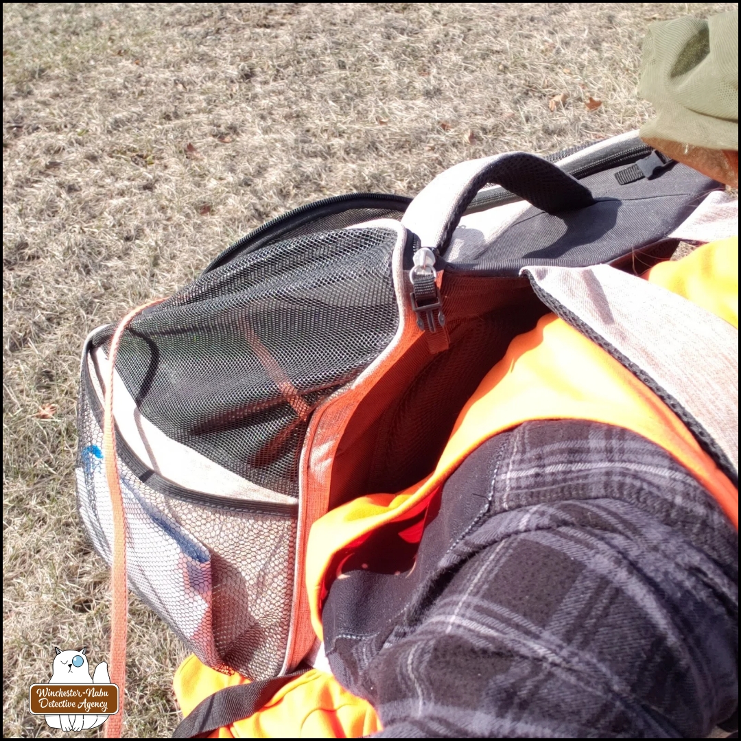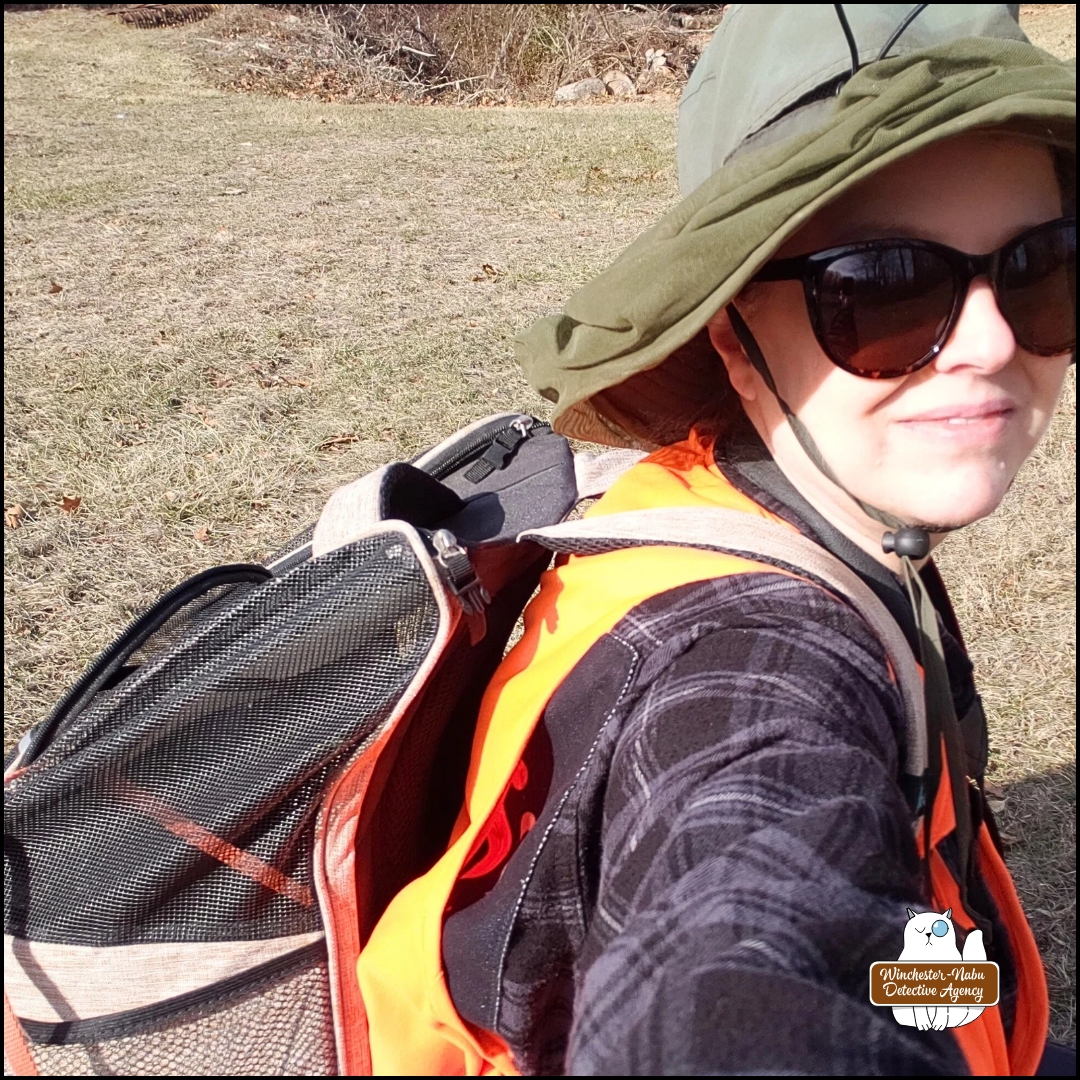 On a sunny day, I took Gus on a different adventure. I decided to pack him into the backpack and go out in search of whatever the vultures had targeted. Going up a small but steep hill was no easy task with the extra weight of Gus on my back. It still would have been hard for me without him.