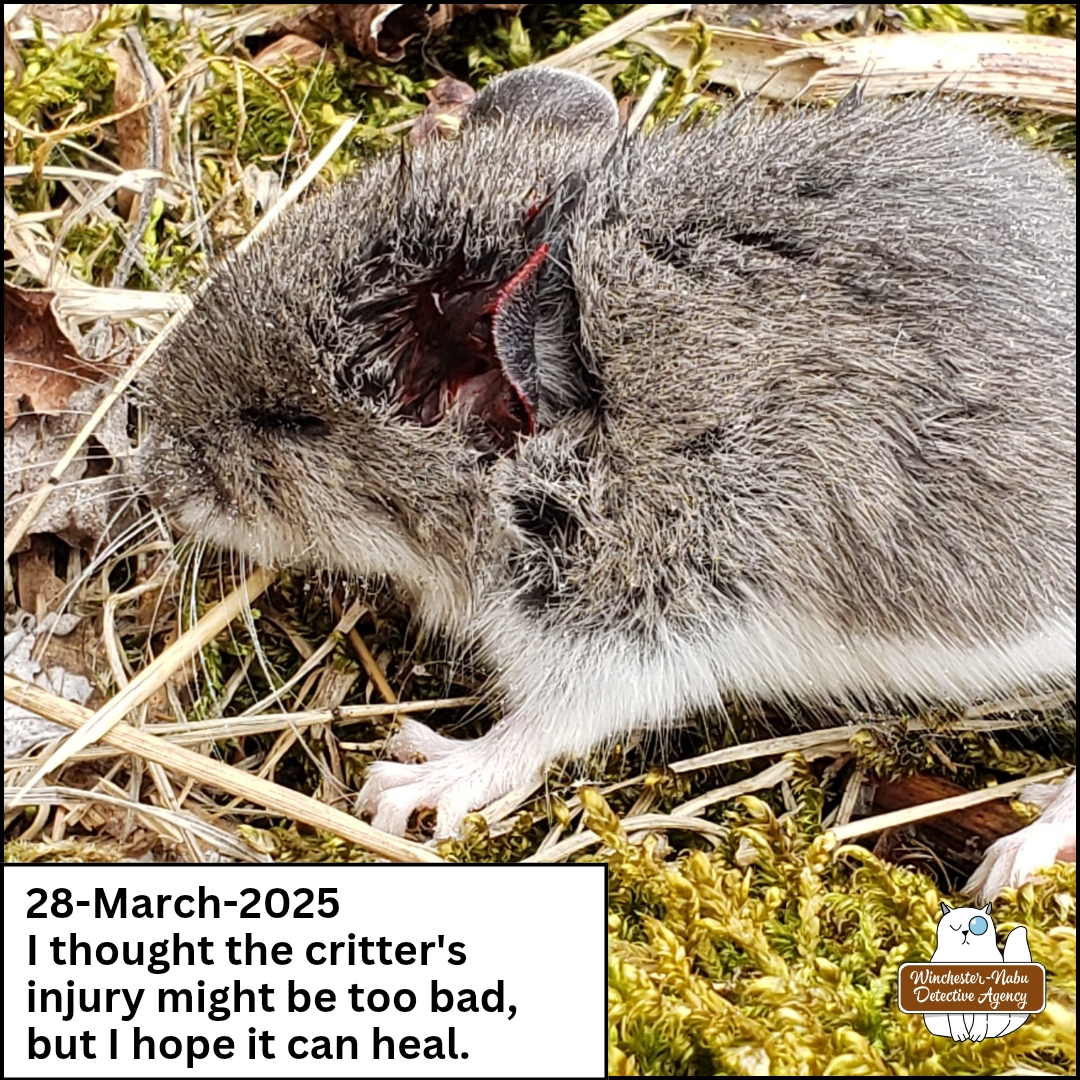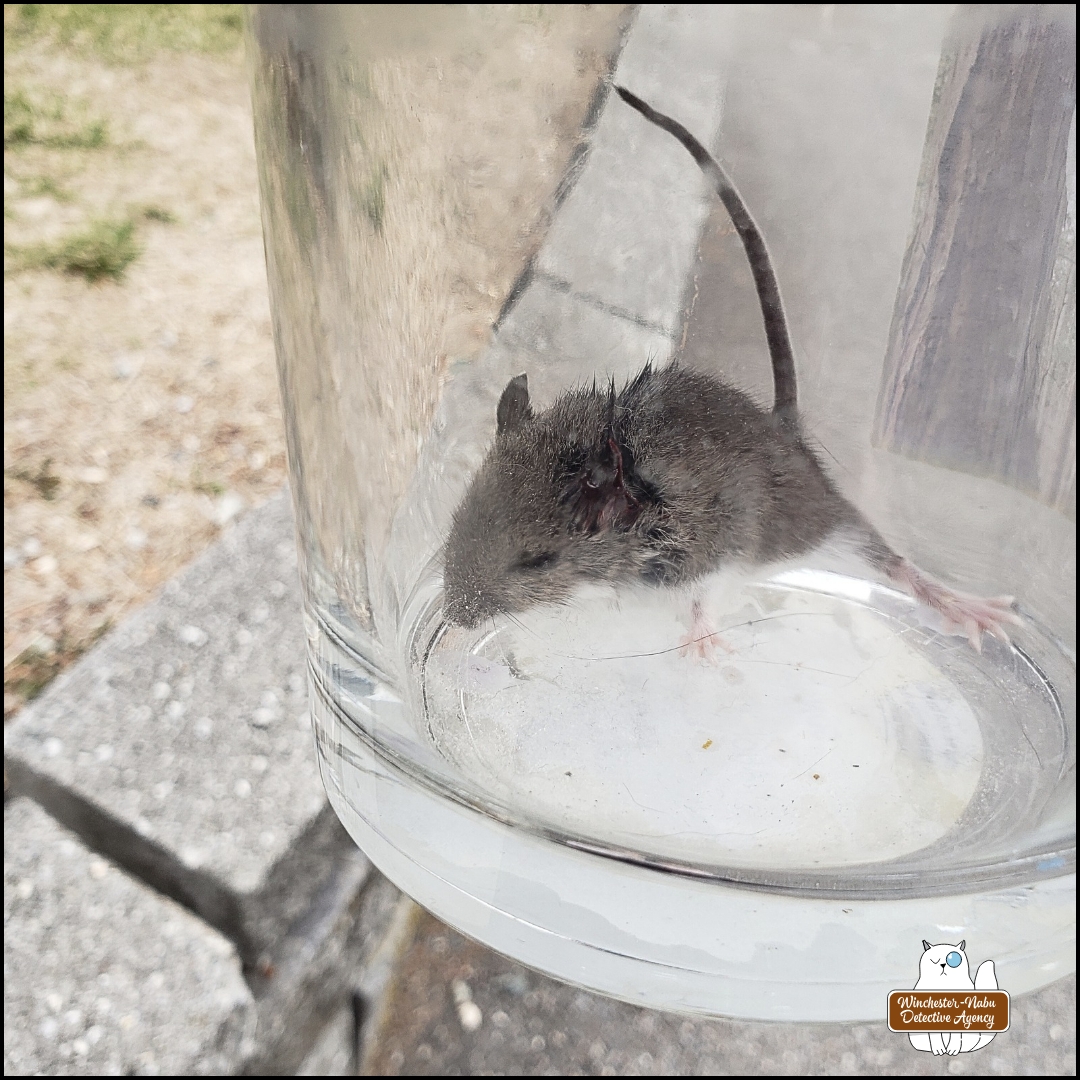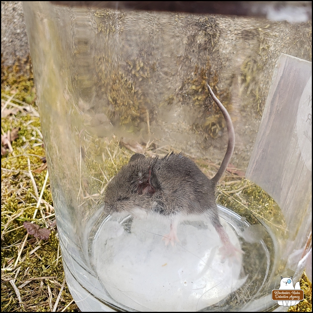 As the Winchester-Nabu detectives have previously reported, there have plenty of audio experiences when mice are scurrying inside walls and between the floors. Though one was captured in the workshop, it escaped due to human error. On March 28, 2025, we had a successful capture and relocation thanks to the hard work and unusual cooperation by Gus.