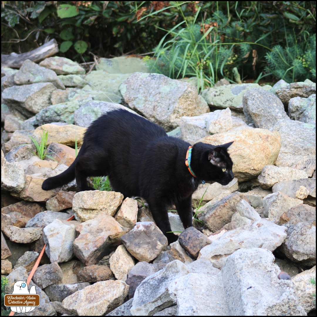 Oliver, Gus, and all the humans of the detective agency were surprised by the sudden appearance of a rat, especially because of its chosen residence at the Moretti Rock Fortress. The new critter appears to be an adult. Due to the lack of babies (we honestly don’t want that close to the residence), we believe this is a male rat. This rat presents itself as a festitidiously clean critter. He’s nibble and quick. He definitely loves peanuts, but he doesn’t seem to eschew any of the snacks profered. We’ll continue to observe Nicodemus and get to know him.