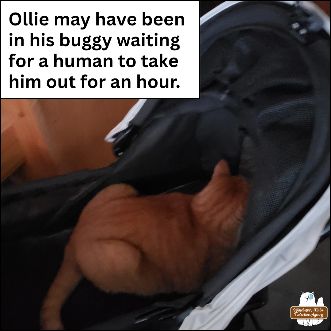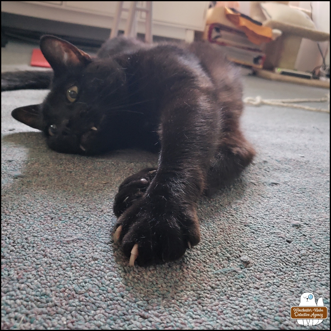 The cat detectives discovered Moretti’s Rock Fortress had a new inhabitant. This is a species we’ve never before seen at the Winchester-Nabu estate.