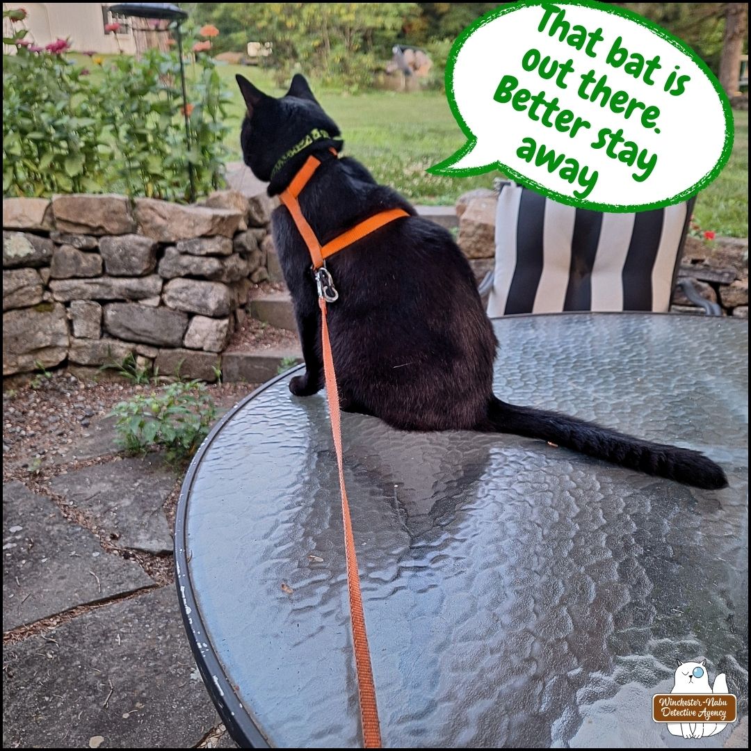 However, bat conservation is something we take seriously over here at the Winchester-Nabu estate. The Grumpy Old installed the two bat houses now filled with residents. We have a healthy colony after the devastation brought on by the white nose fungus plague that wiped out millions of bats in the country.