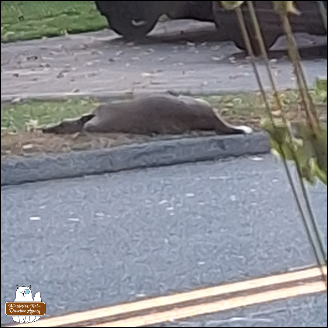 Hours after the police officer left, a municipal worker marked the body with orange spray paint to indicate to others that this incident was already called in. The only way for the neighbors to get rid of the body now is to bare the fee of having a private service come take her away or wait and see if the county will do anything. If not, she’ll stay there on their front lawn until the scavengers take care of it.