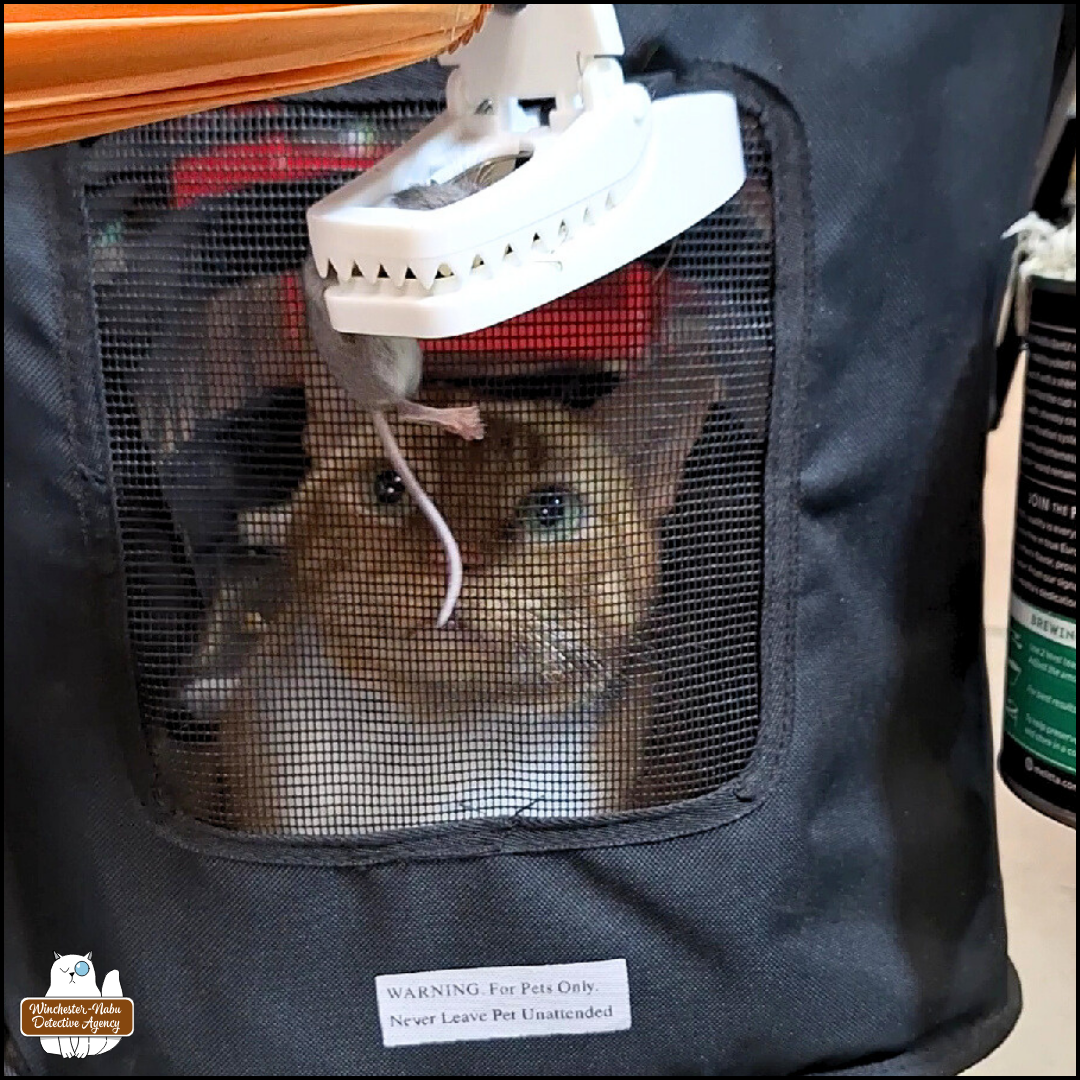 Perhaps, The Grey Man isn’t drawn specifically to the Winchester-Nabu house, and instead, is drawn to the delicious food he is “served” by the Grumpy Old Man. For months, the Grumpy Old Man has been putting out the killer traps for rodents. This is honestly a step up from the heinous glue traps. I cried and begged for him to stop using those. I admitted that even the most vegan out there would choose a quick death blow over the agony of being trapped, starved, and helpless in glue. Avoid glue traps at all costs.
