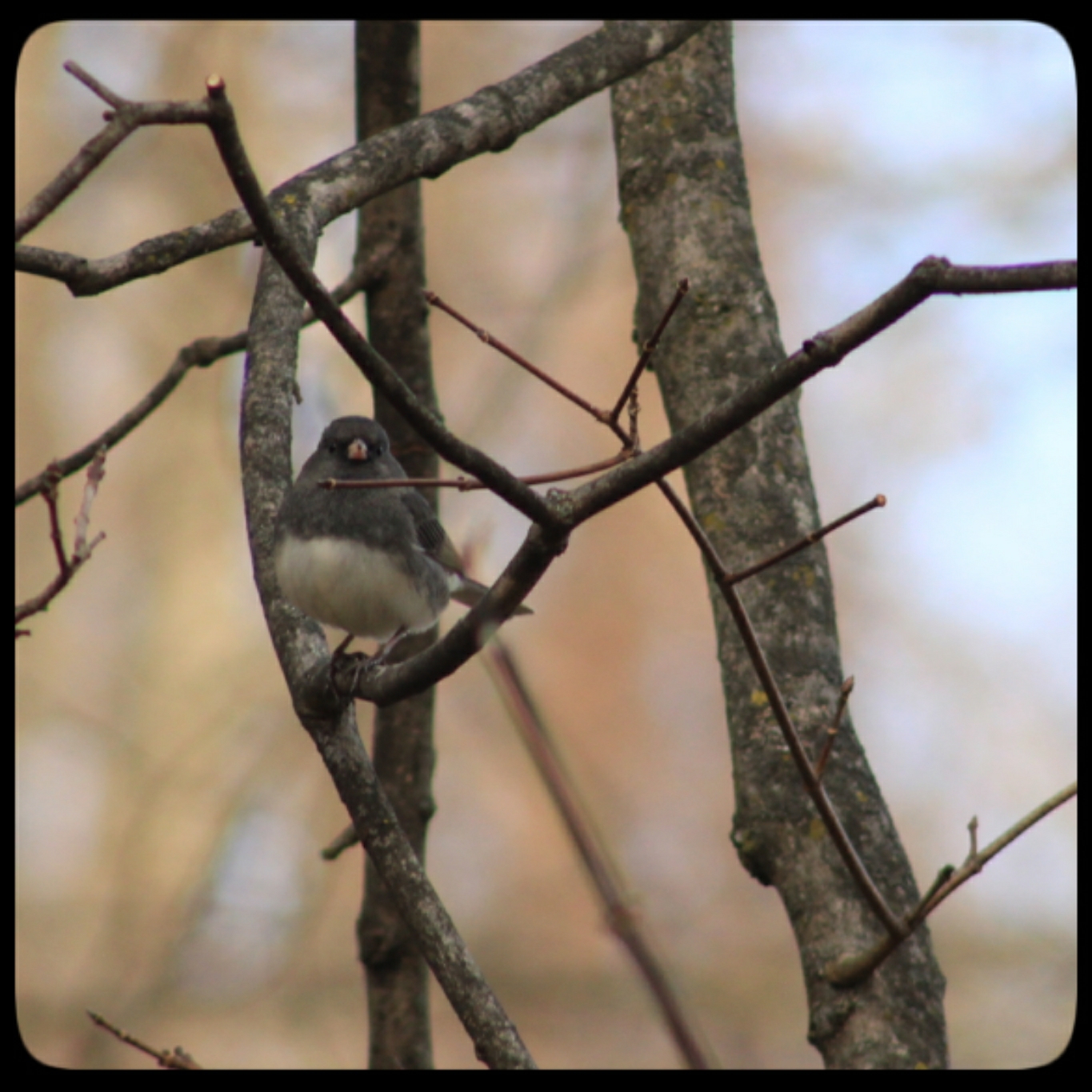 Speaking of slate, it’s the one of the prevalent colors in the cold season. It’s also one of the varieties of an abundant winter bird, the Dark-Eyed Junco. These small, round birds are in the sparrow family. According to the birding websites, they come in a few shades of neutral tones like charcoal and slate. The Oregon variety has a different pattern all-together from our east coast birds. Ours follow the “Great White Shark” pattern as I call it whether I’m referring to sharks, cats, or anything else. This is the pattern of a white underside and a grey dorsal side. There’s a stylish variety called the pink-sided junco found in the Rocky Mountains that I could mistake for an Eastern towhee. One that plays it between stealth mode and flashy is called the red-backed junco. The grey-headed looks like a paler version of the red-backed. The white-winged junco is barely discernible to my novice eyes and ears from the slate junco. Way up in Canada, they have their own color patterns too.