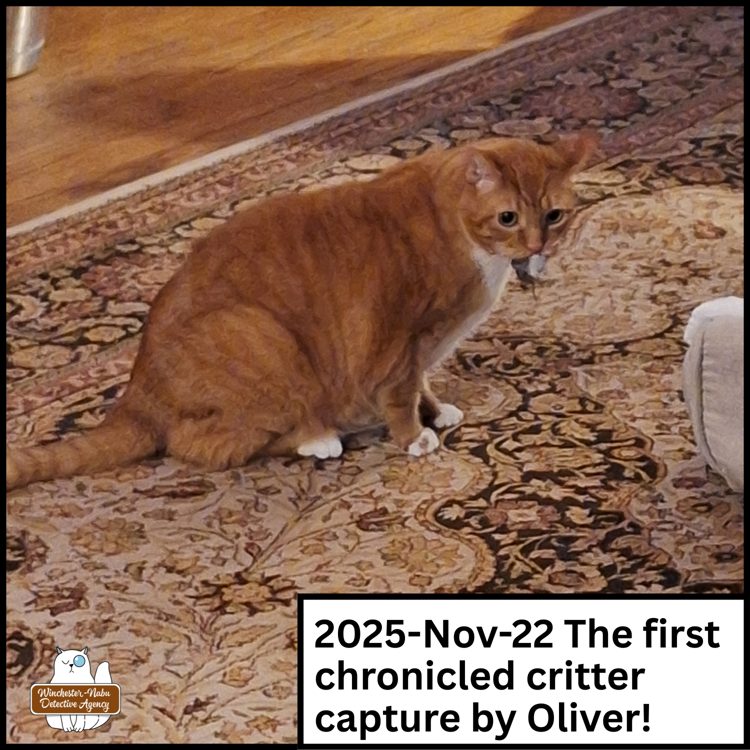 Professor Oliver Queen Winchester has been demanding more chicken treats lately. He wanted to prove to us that he earned them. He set out to solve one of neverending cases: indoor mice.