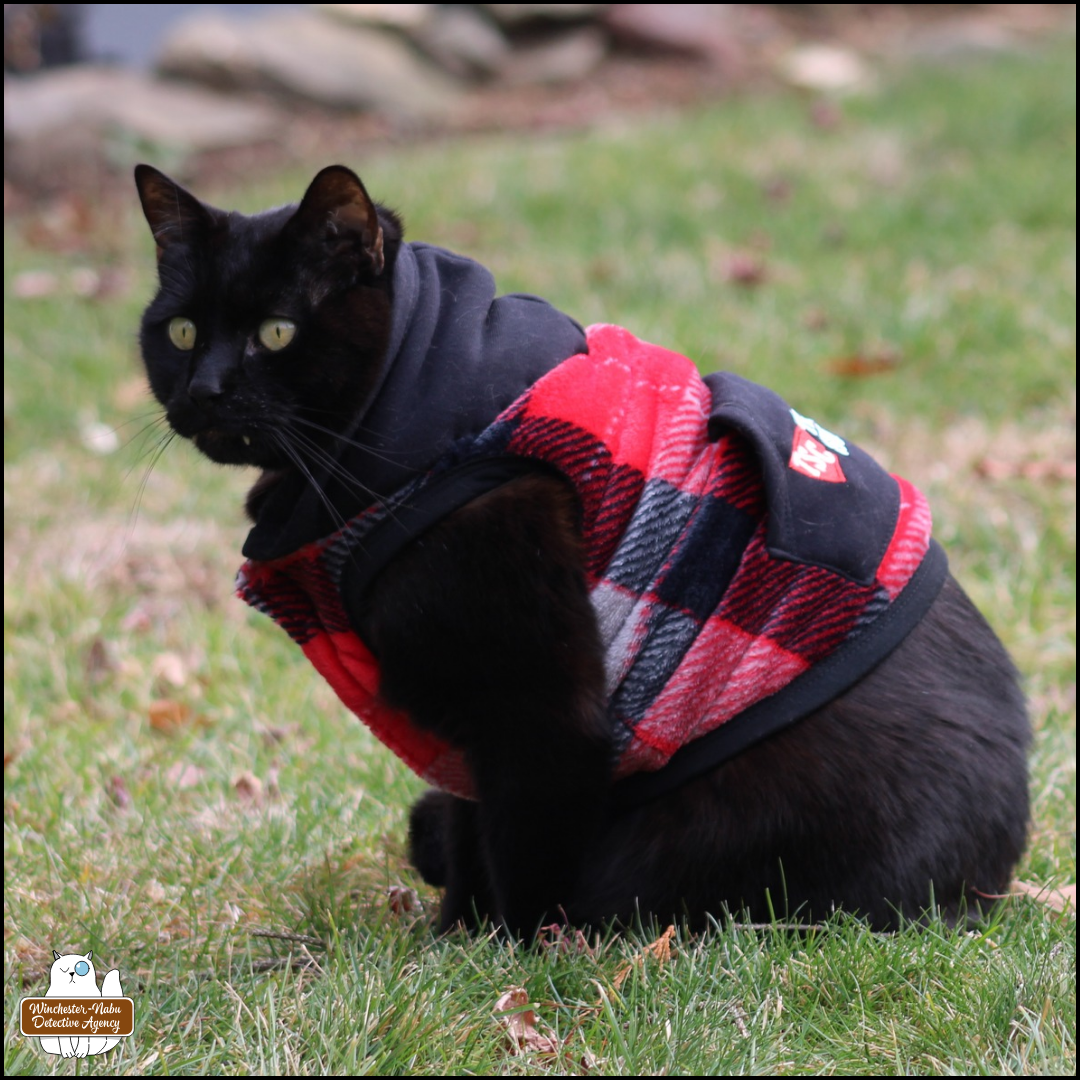 The boys and I were able to take several trips to the Big Rock and junkyard to distribute snacks. Oliver did the most observation time and talking to critters, as usual. Gus inspected all around for scents of intruders and looking for any evidence of crimes. Ollie overhead a conversation between two squirrels, Silver St. Cloud and Dr. Silverstone.